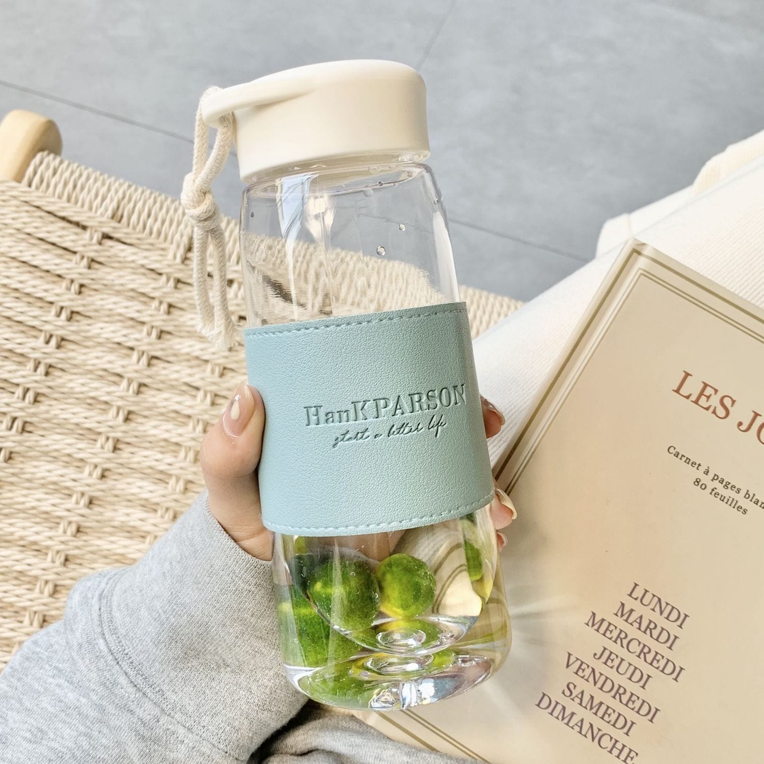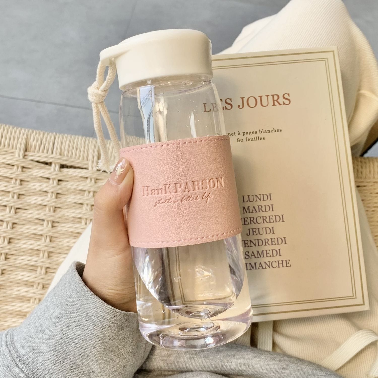 【本日限定激安格】プラスチックカップ手持ち学生ポータブルレザーカバーシンプル水カップ 水筒