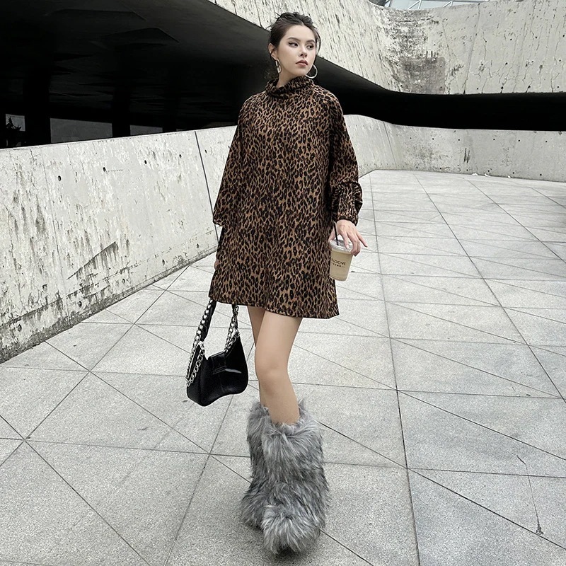 ロングブラウス 豹柄 関連商品購入可能 ハイネック ひょう柄 レディース チュニック 【J.Fashion】 ロングTシャツ