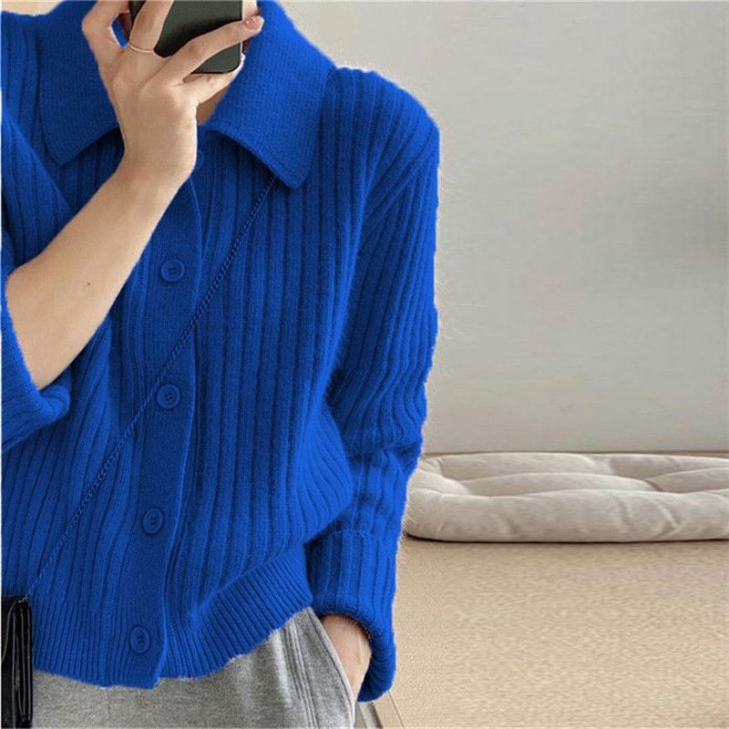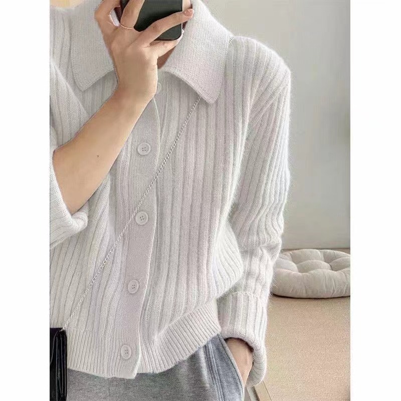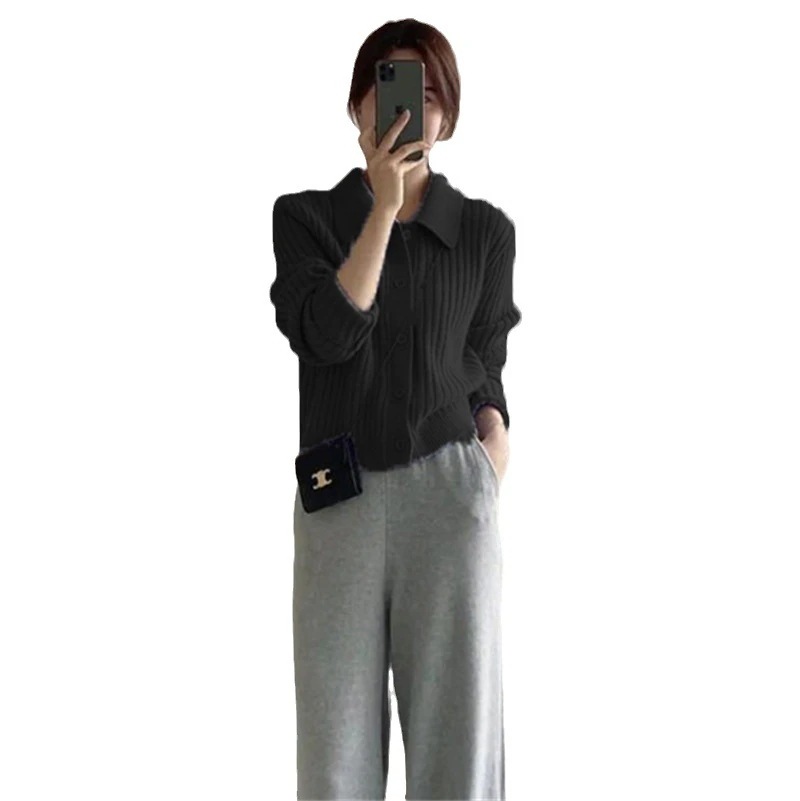 シンプルでコンパクトなポロネックニット女性用 新作 風ショート丈無地トップス