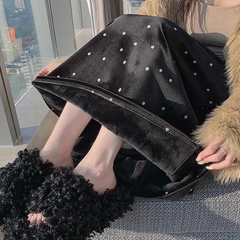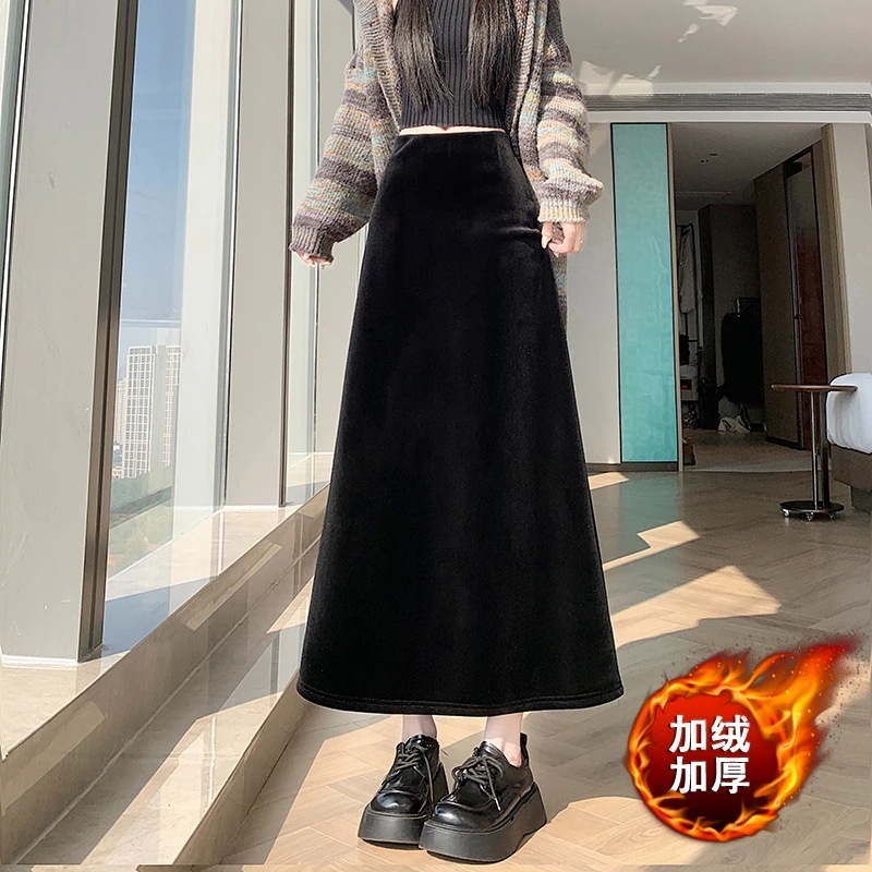 ベルベット肌触り 合わせやすい シルエット補正 ボディコンロングスカート ゴムウエスト ミディ丈