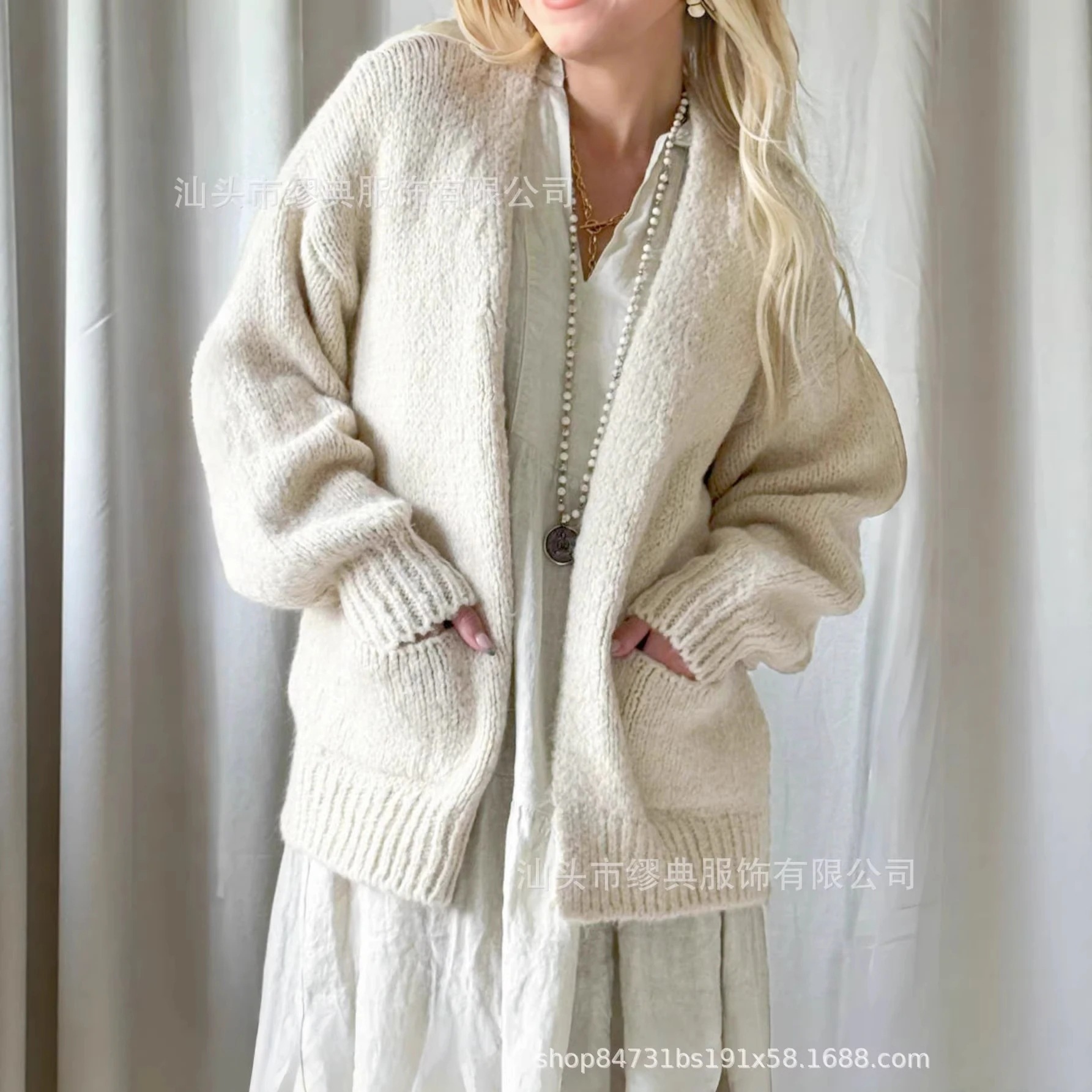 風 レトロでラフなスタイル ゆったりシルエット 女性用 セーターコート 春秋用 厚手無地 単色長袖ニット