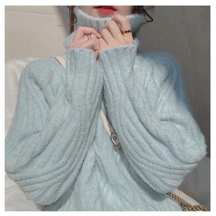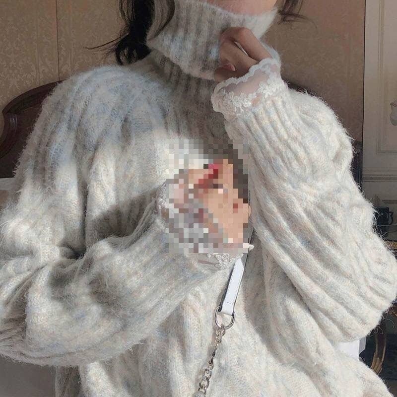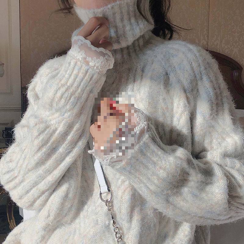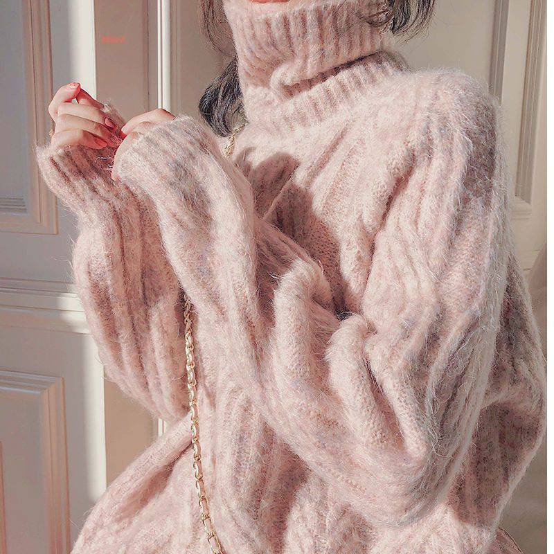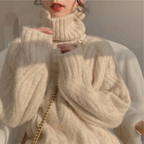 人気なリプニット タートルネックニット 新作 厚手 ツイスト 怠惰風 セミロング ゆったり セーター カシミヤタッチ
