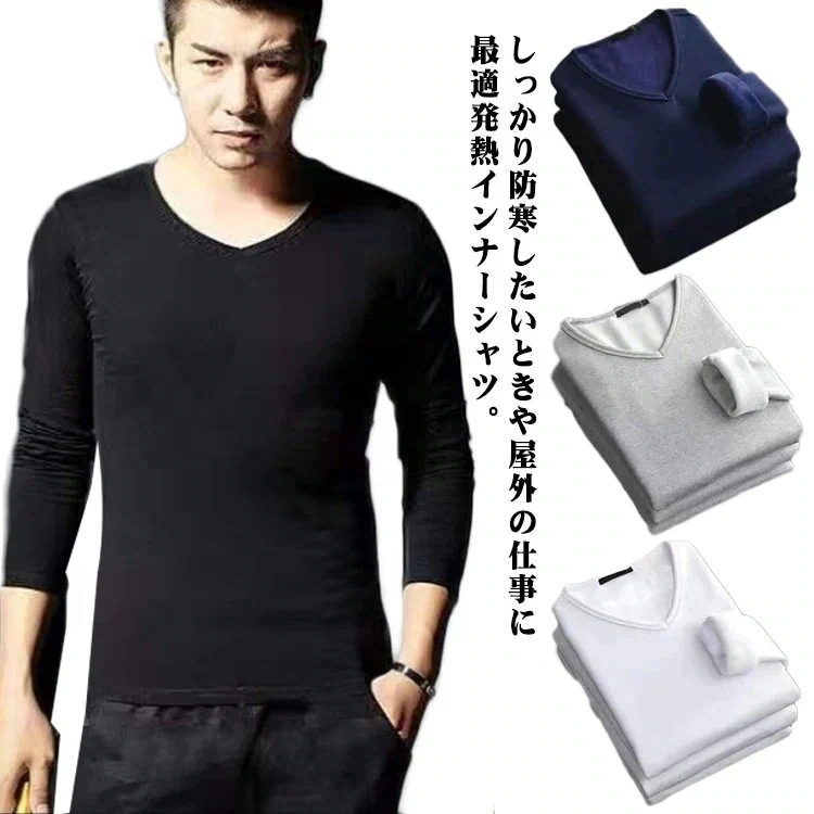 [IRC]2枚セット Vネック 裏起毛 長袖Tシャツ メンズ インナー インナーシャツ 厚手 保温 防寒 肌着 ヒートテック アンダーシャツ ロンT Tシャツ ストレッチ カットソー 暖