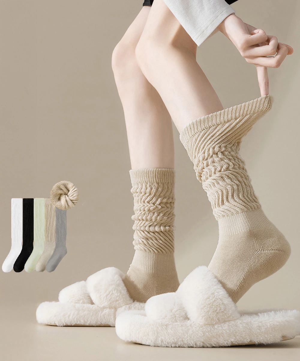 本日限り激安SALE即纳ハイソックス5足セット くしゅくしゅ靴下