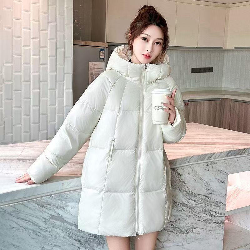 パフジャケット風ダウンコート 25新作 ゆったりシルエット ダウン混紡 中丈 フード付き 厚手 コート ダウンジャケット