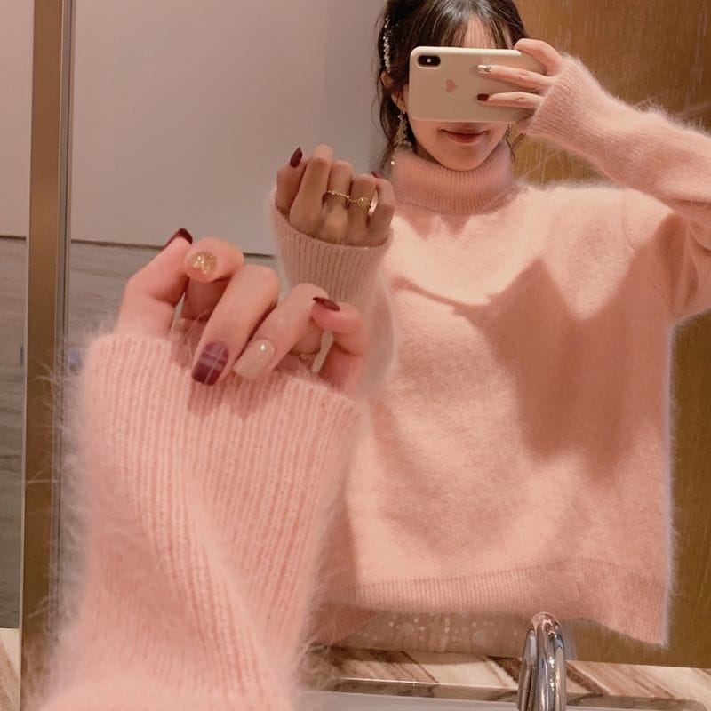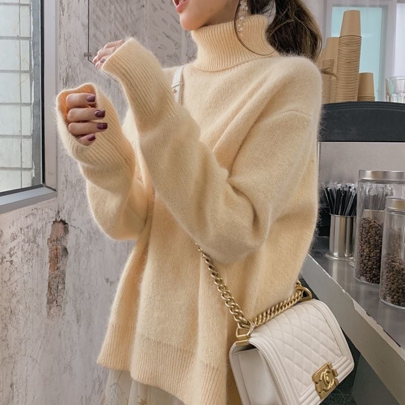 韓国風 冬 女性のための白いタートルネックミンクベルベットセーターは 新しいスタイル ルーズでレイジーなスタイル レイヤリングシャツを厚くしました レディース トップス 長袖 リブ ストレッチ ニット