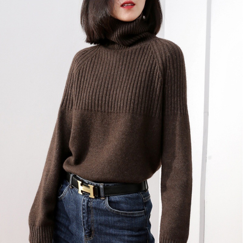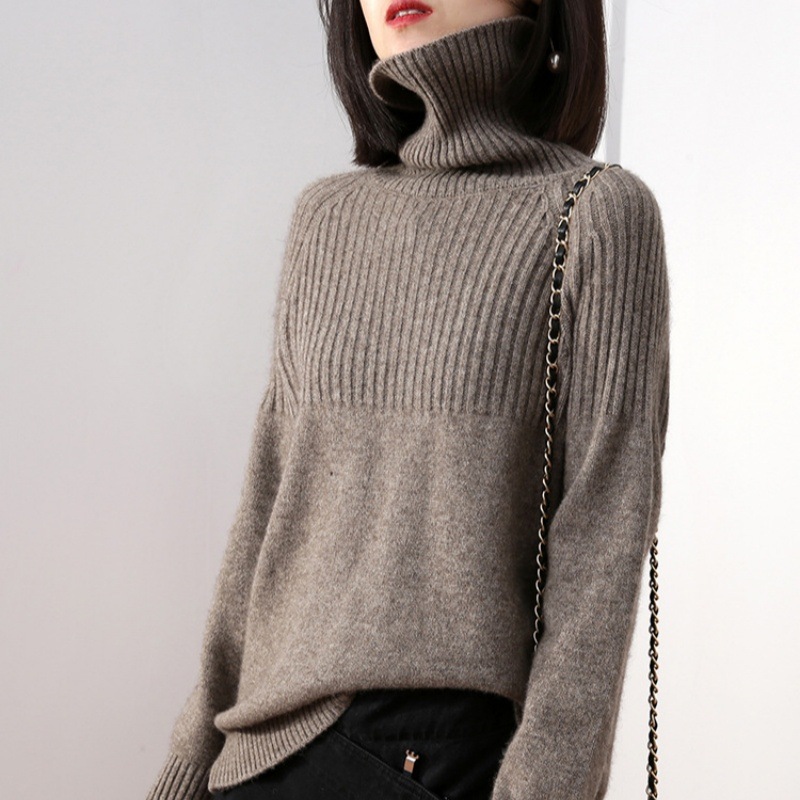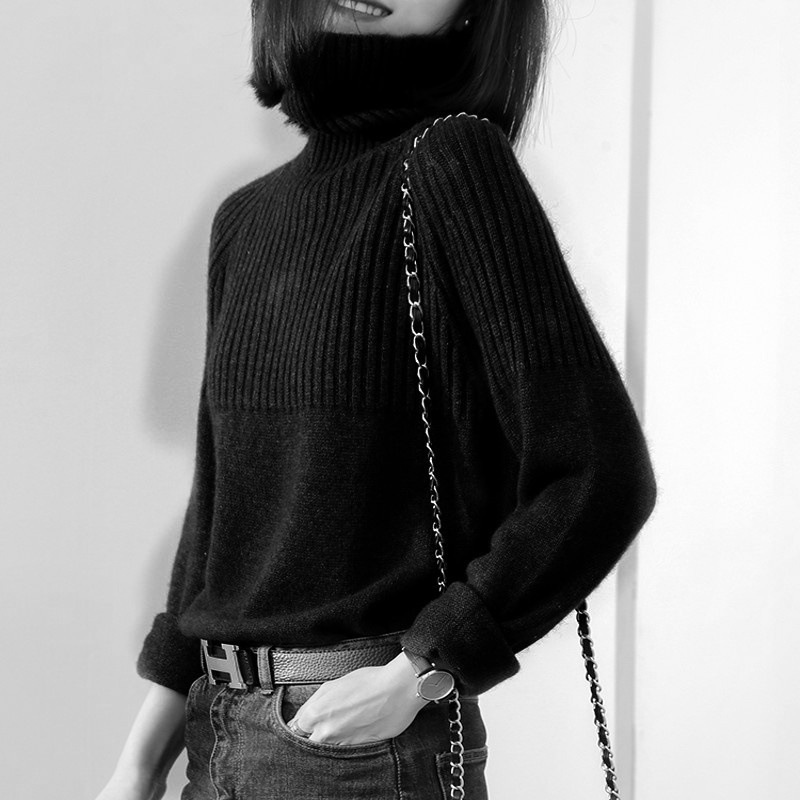【本日限定】着るだけモテニット!厚手ハイネックニット服セーター女性ルーズレイジーウーセーター/ハイカラー大サイズ無地厚手シャツ