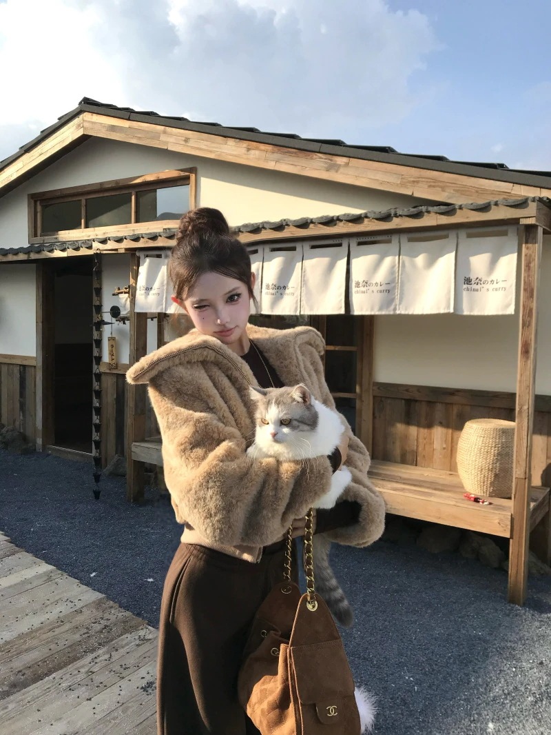 2025 秋冬 ショート丈2WAYアウター韓国っぽ ボリュームカラー あったかかわいい風エコファージャケット厚手防寒暖かい羽織るコーデレトロ フェイクムートン長袖サイズシルエットファッションレディース