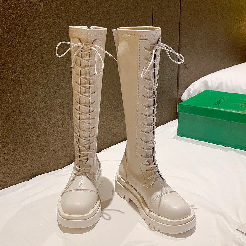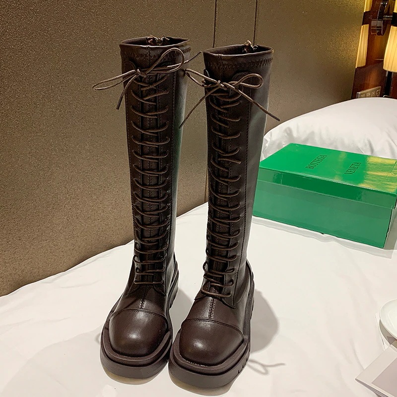 2025 韓国秋冬 ロングブーツ レースアップ 5cmヒール靴 美脚 脚長 色っぽ風 女っぽローヒールカジュアルフェイクきれいめ 大人っぽ 上品 ウエスタンブーツ PUエコゆったり フェミニン