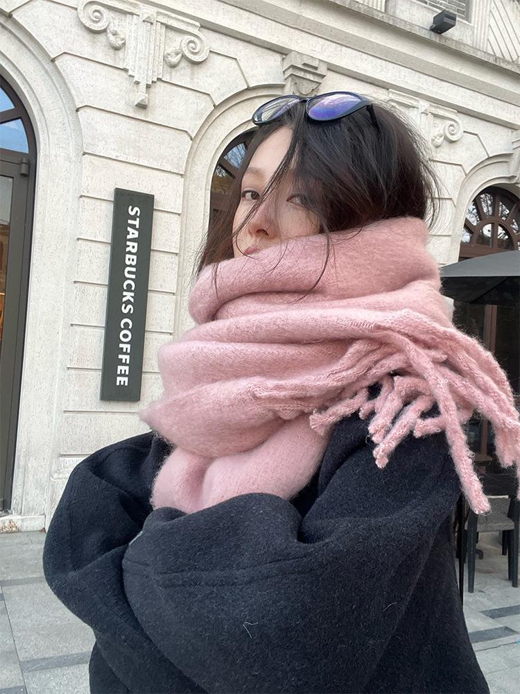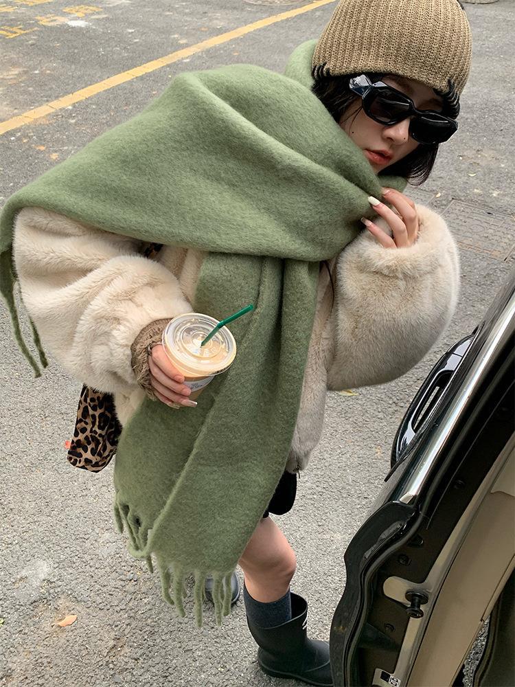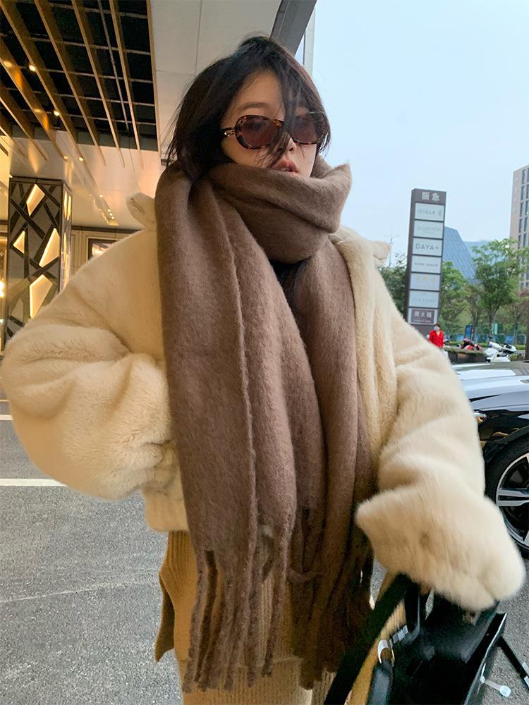 冬 追加! シンプル マフラーマフラー 秋と冬のふわふわ感ロング暖かいタッセルブラシ毛大マフラーレディースモデル無地万能マフラーデイリーマフラー