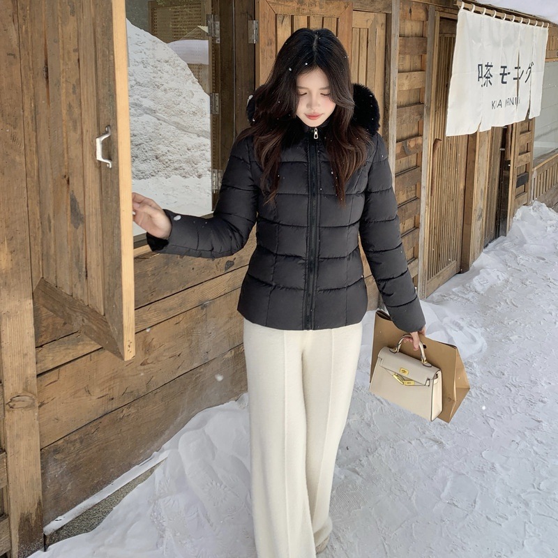 おしゃれスリムダウンジャケット レディース ジャケット コート ダウンコート ショート 長袖 フード タイト スリム 細身 ウエストマーク ファー 大人可愛い シンプル カジュアル レトロ 主役級 存