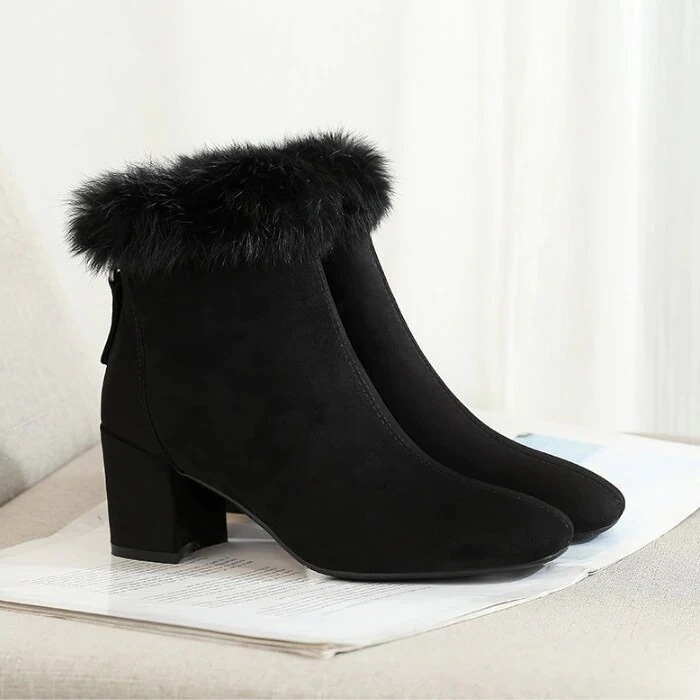 裏起毛ファッション ショートブーツ フリース ヒ一ルパンプス 秋冬 新作 太ヒール 韓系 ふわふわ 裹起毛 おしゃれ 流行り 百掛け ハイヒール ヒール高さ 3-5cm スノーブーツ