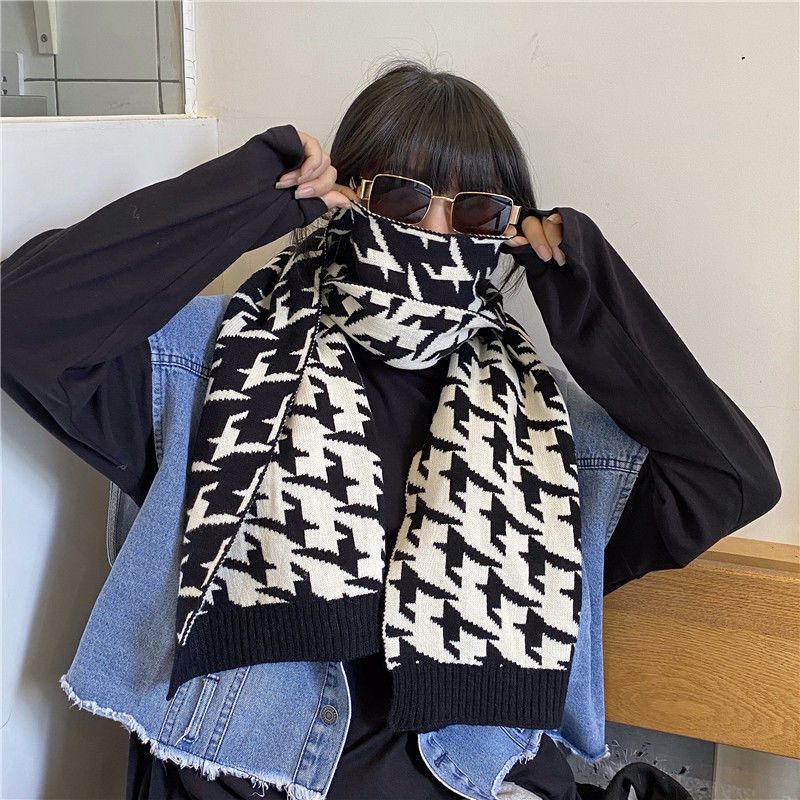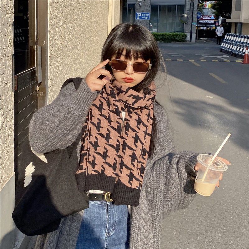 千鳥格子 秋冬 フェイクカシミア ウォーム スカーフ おしゃれ 百掛け 厚手 マフラー ストール