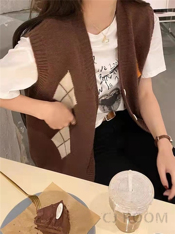 ニットベスト レディース ベストカーディガン トップス カジュアル ベスト チェック柄 春秋 学生