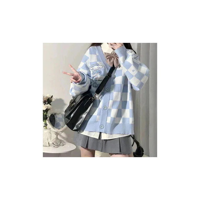 【日系人気商品】 制服 カーディガン 漫画 jk 制服 チェック セーター ジャケット カーディガン レディース 冬 カレッジスタイル ブルー ニット カーディガン