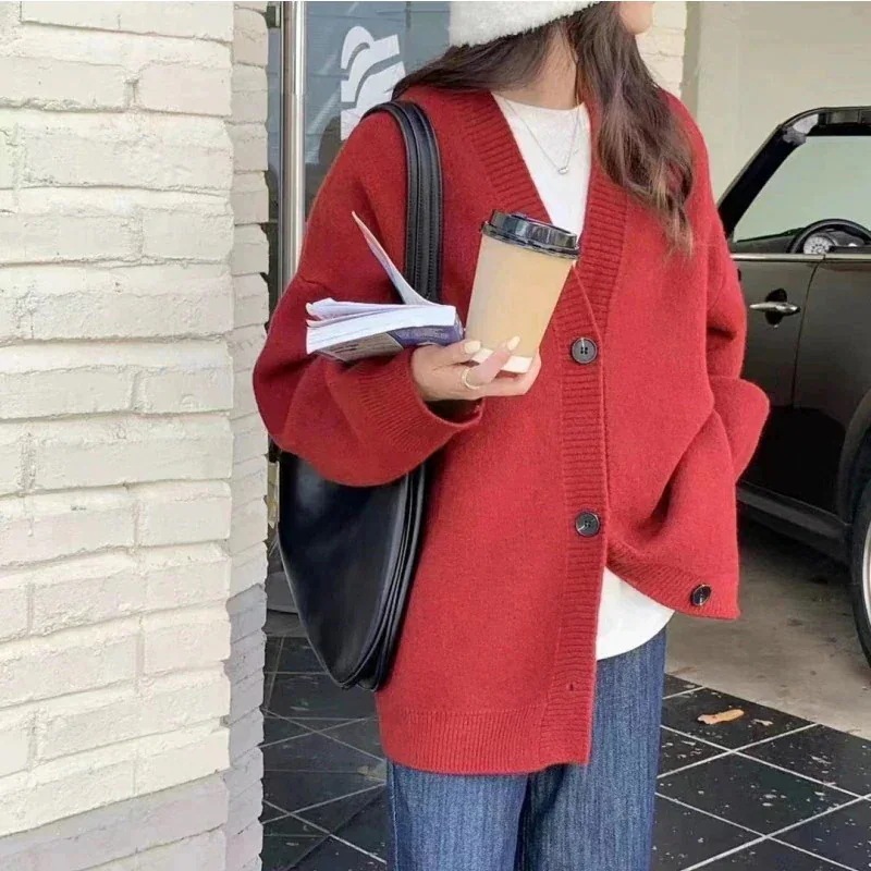 【日系人気商品】 制服 カーディガン 赤 ニット レディース コート 春秋 ゆったり ごろごろ 韓国 学生 万能 ニット カーディガン アウター セーター レディース