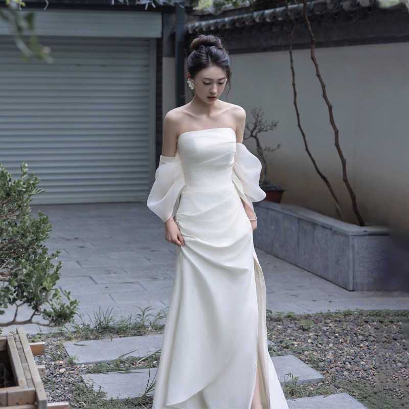 2026 年に向けたエレガントで洗練されたウェディング ドレス: ブライダル ガウン結婚披露宴のドレスシンプルなストラップレスのイブニング ガウン