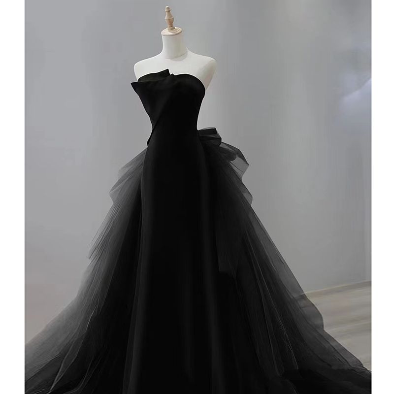 女性用黒のイブニングドレス2026ストラップレス宴会に最適なエレガントで洗練されたデザイン