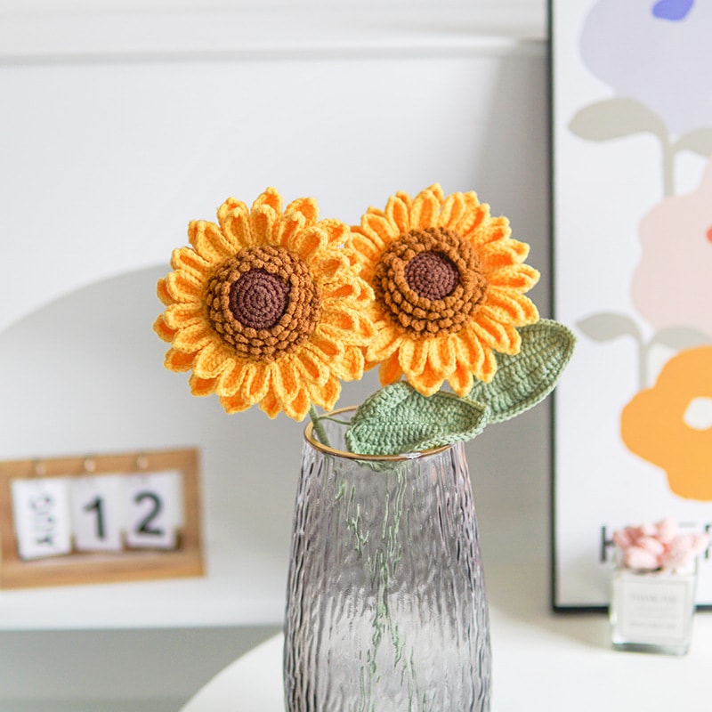 卒業シーズン贈り物 【急速出荷】完成品手織り二層ひまわりブーケウールニットひまわりホリデーテーブルデコレーション2つの方がお得です