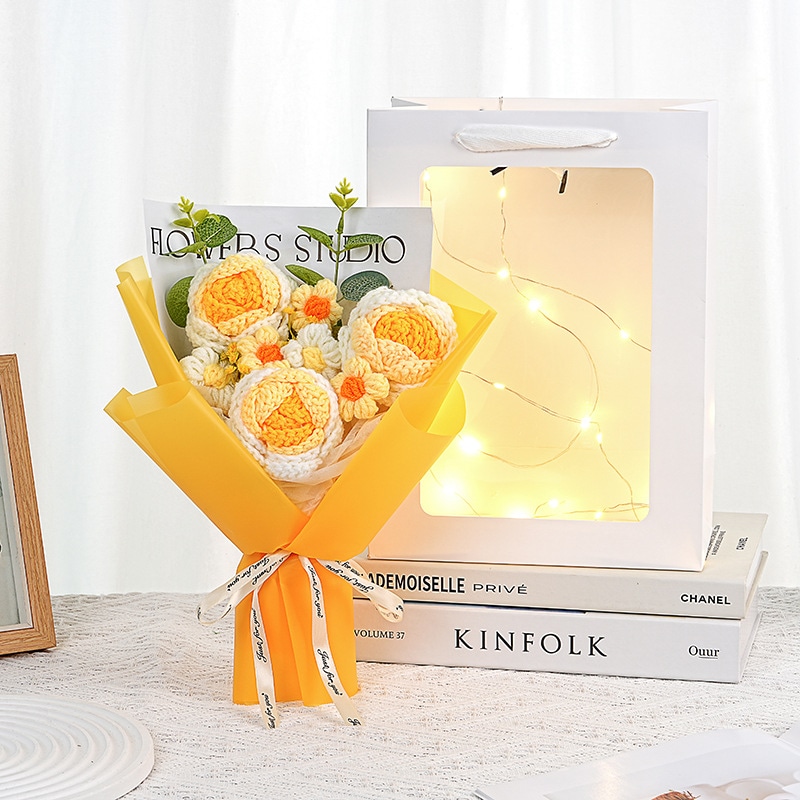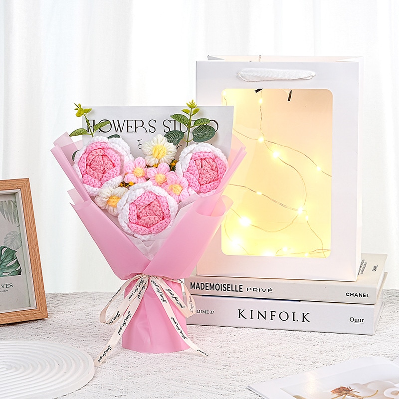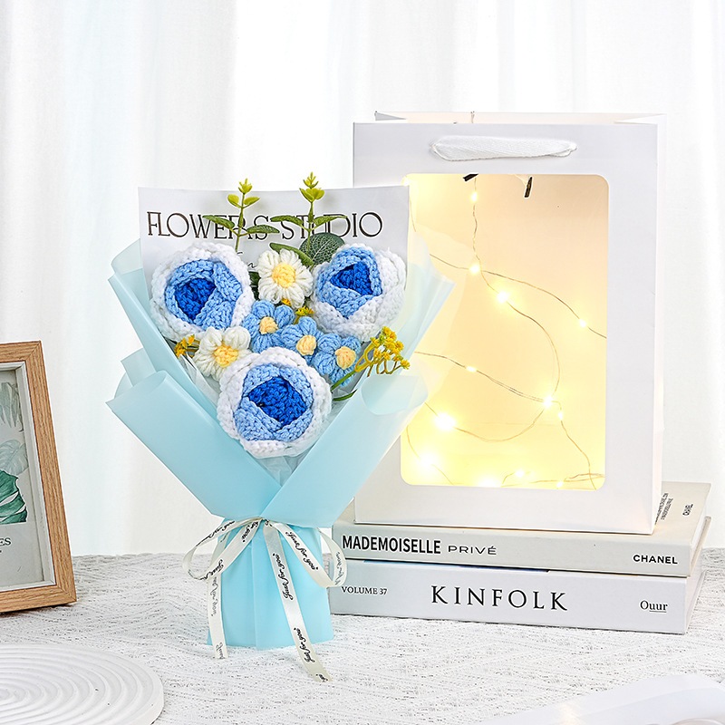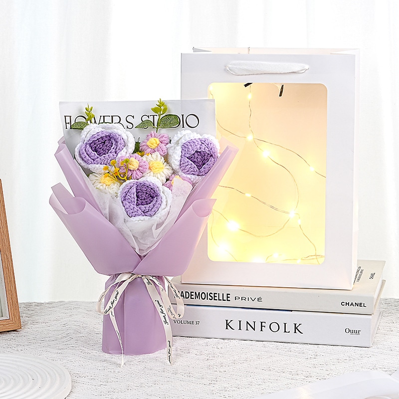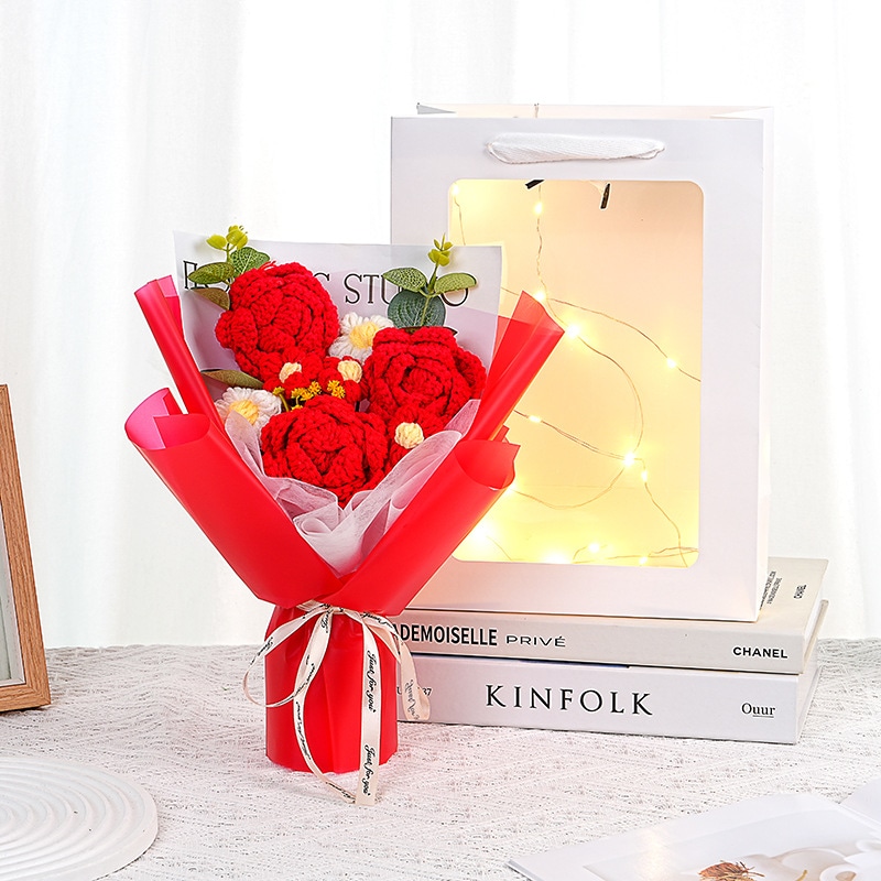 卒業シーズン贈り物 【急速出荷】バレンタインデーギフト教師クリエイティブローズ手編みウールブーケ完成ニットフラワー誕生日ギフト2つの方がお得です