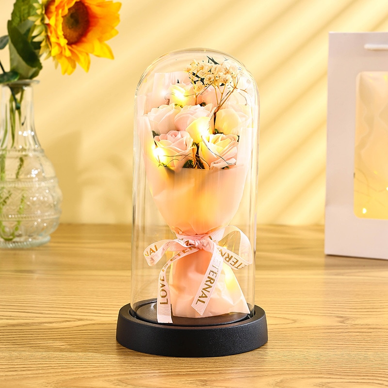 卒業シーズン贈り物 【急速出荷】バレンタインデーギフトエバーラスティングローズガラスカバーソープフラワーギフトボックス実用的な装飾誕生日クリエイティブギフト2つの方がお得です
