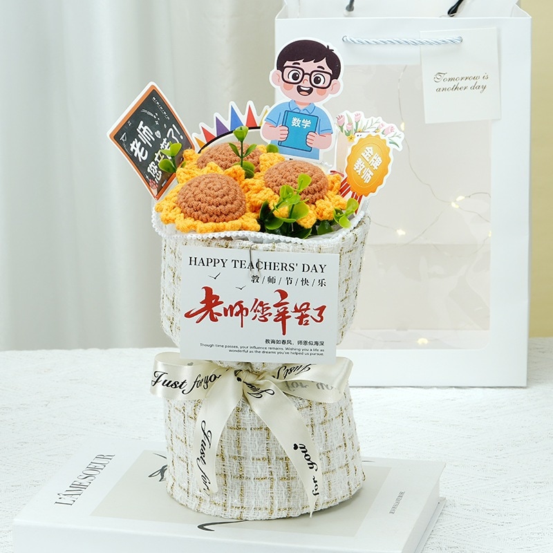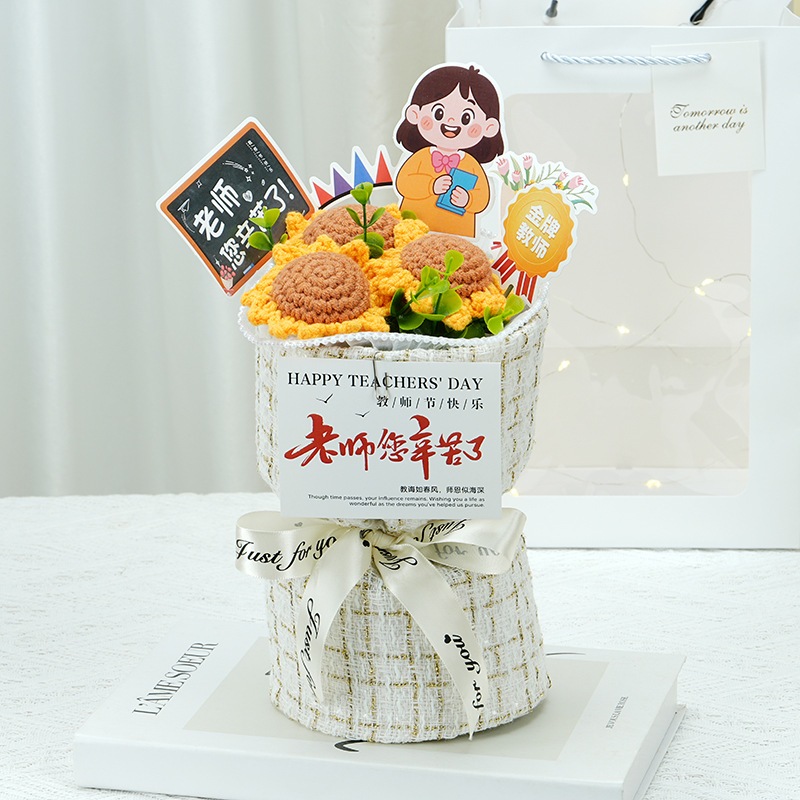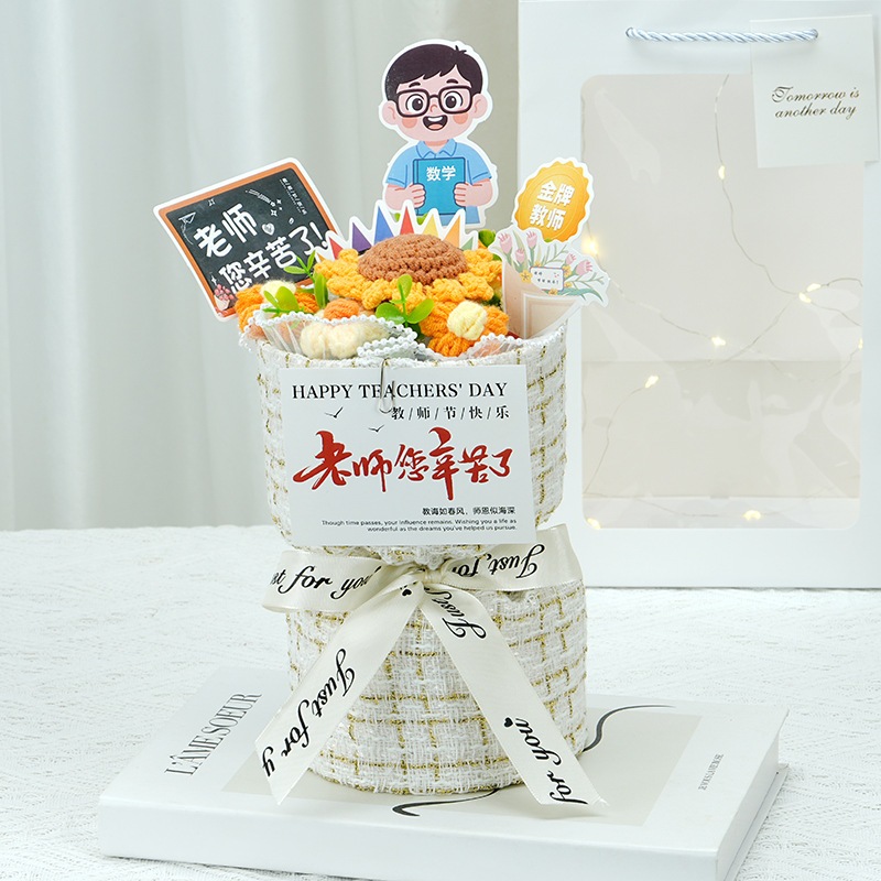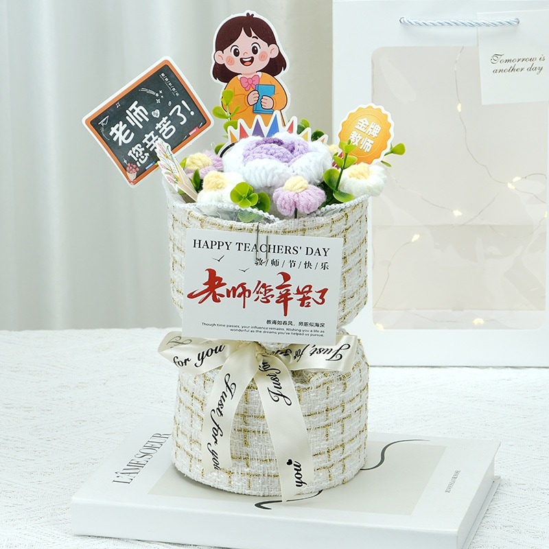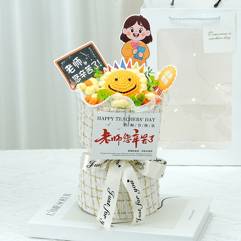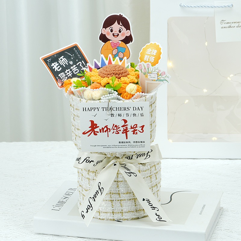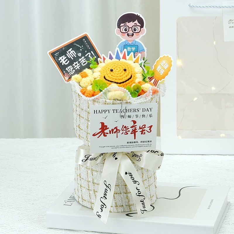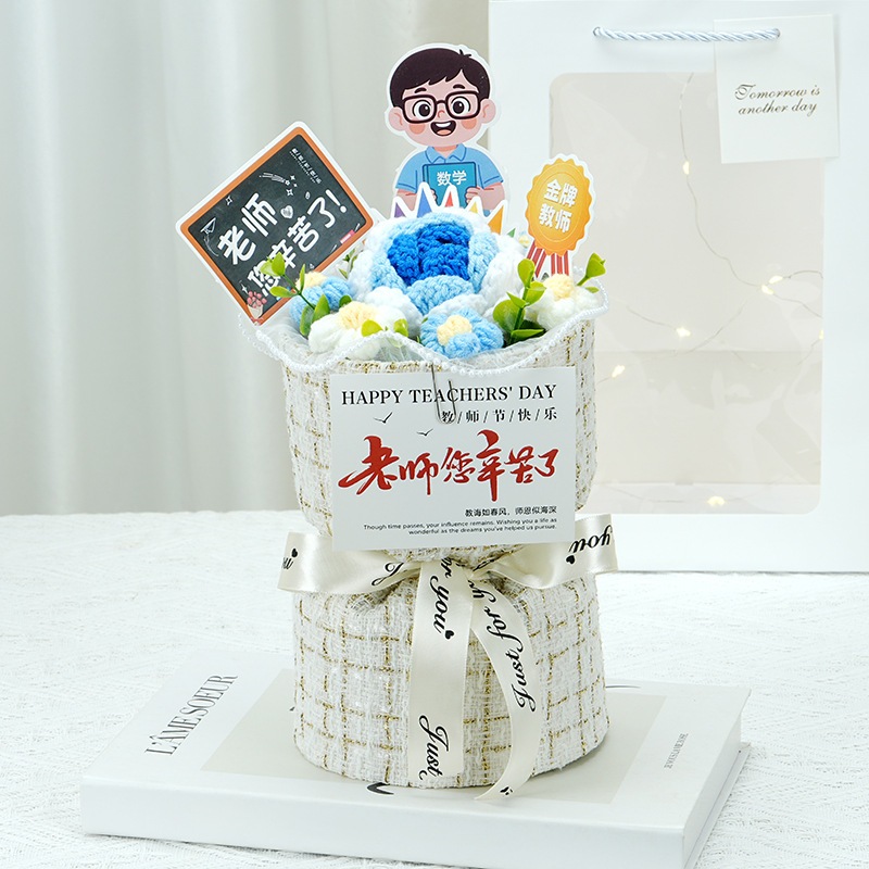 卒業シーズン贈り物 【急速出荷】クリエイティブギフト完成品ニット小さな香りのよいバラ男性と女性の教師に感謝の花束を持って教師の日ギフト2つの方がお得です