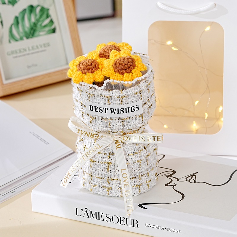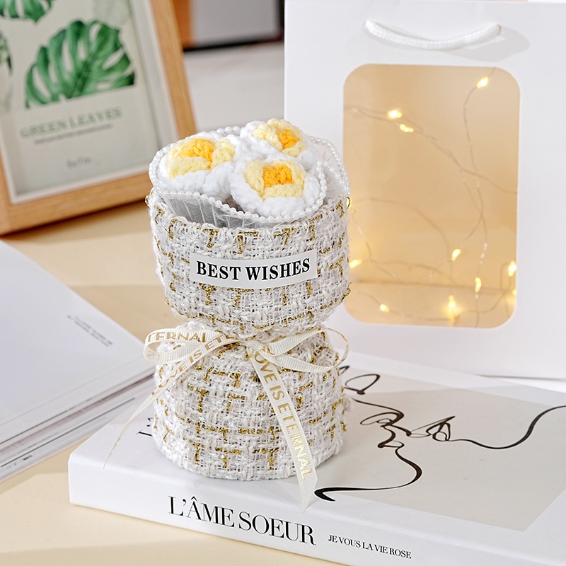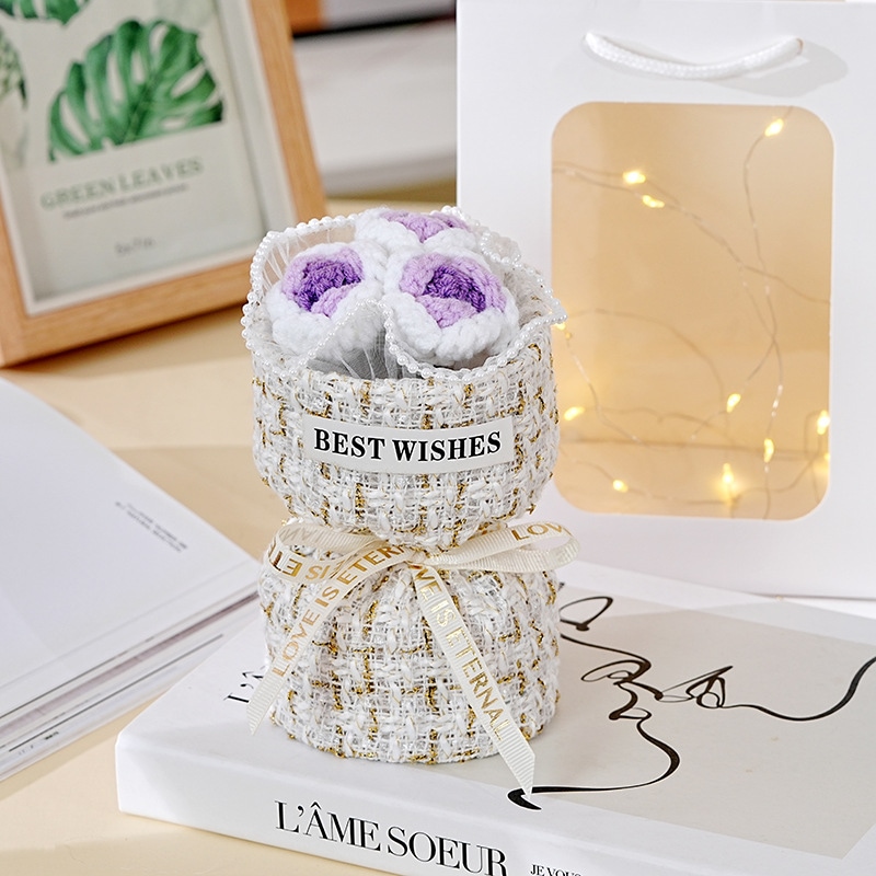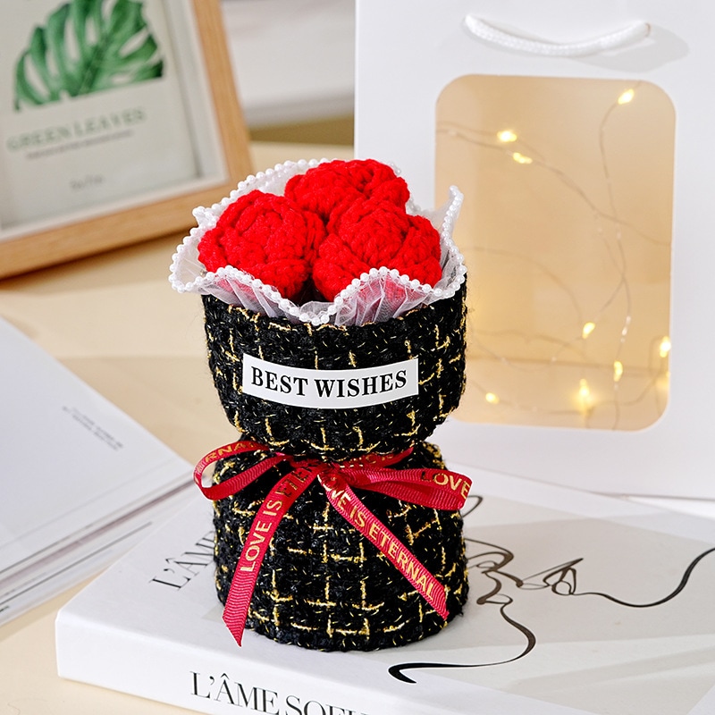 卒業シーズン贈り物 【急速出荷】バレンタインデーギフト小さな香りのよいニットウールブーケクリエイティブ誕生日ギフトバラの手編みのお土産2つの方がお得です