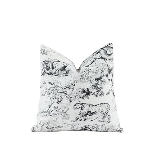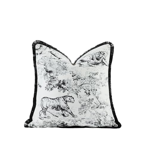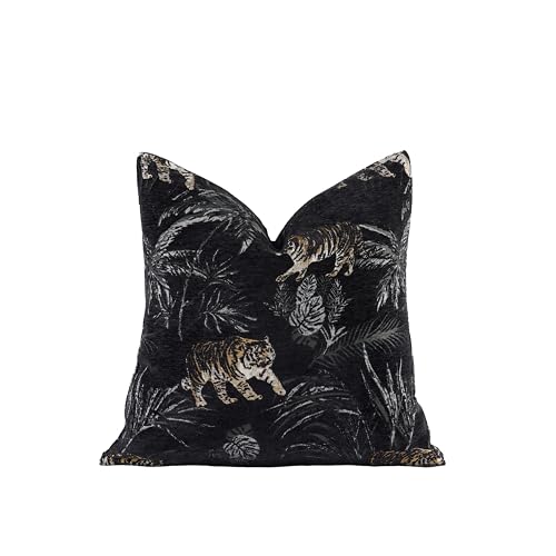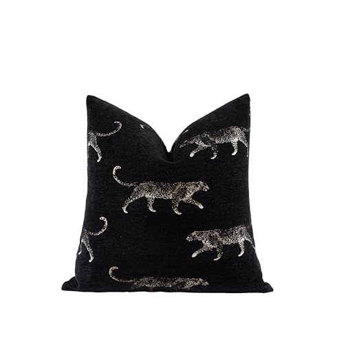 Croker Horse 22x22インチ スローピロークッションカバー - ブラックカラー シェニールジャカード刺繍 ゴールデンレオパードラグジュアリー モダンスタイル カウチ ソファ ベッド 枕カ