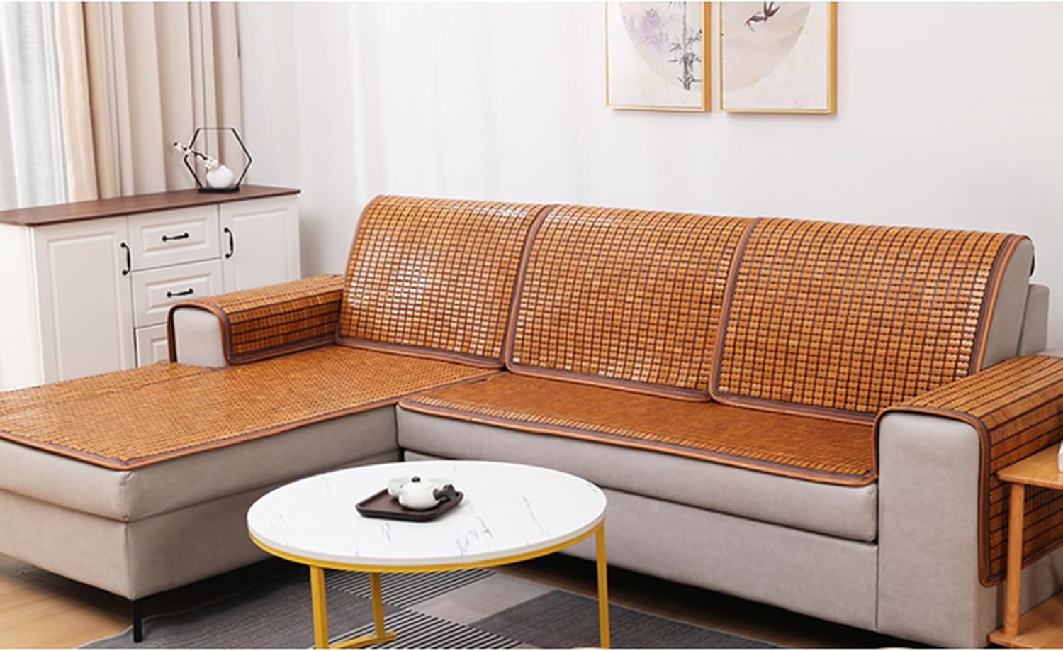 [dhiuebc] チェアパッド 座面クッション 竹マット 清涼 心地良い 50*150cm 和風 竹パッド ナチュラル カラー 暑さ対策 涼しい 接触冷感 通気 滑り止め 座布団 蒸れない 熱中症