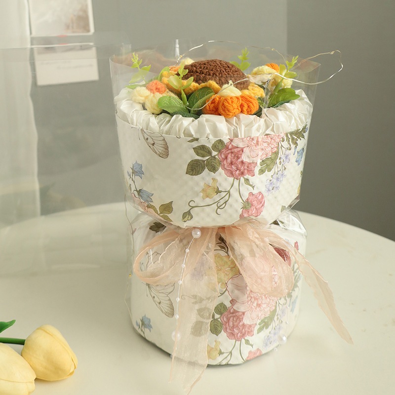 独占販売卒業シーズン贈り物 教師の日のニットブーケ小さな香りの良いひまわりブーケ完成品友人へのギフト模擬ウールブーケ2つの方がお得です