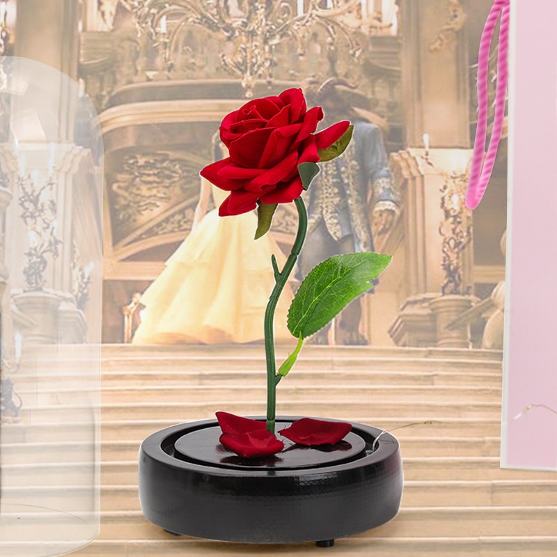 独占販売卒業シーズン贈り物 バレンタインデーギフトベルベットフラワーローズガラスシェードナイトライトオーナメント音楽付き星の王子さまギフトボックス美女と野獣2つの方がお得です