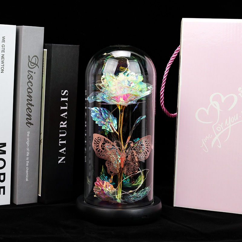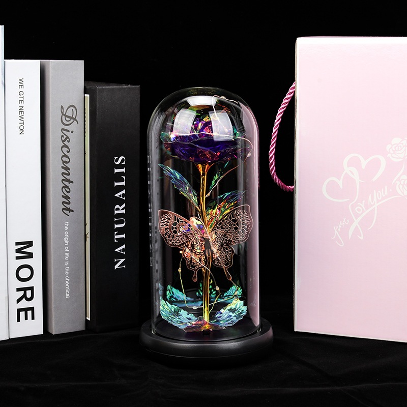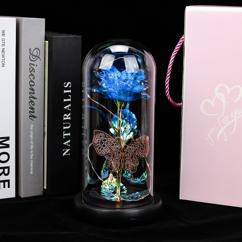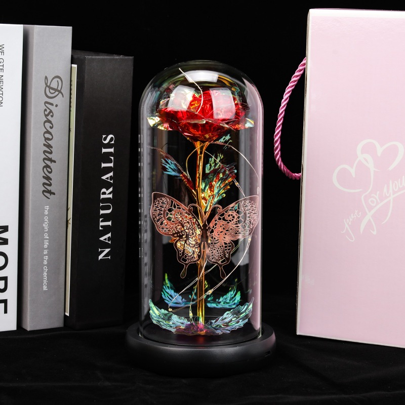 独占販売卒業シーズン贈り物 エターナルフラワーガラスカバーローズゴールドフラワーバタフライリモコン付きledランタンオーナメントバレンタインデーギフト2つの方がお得です