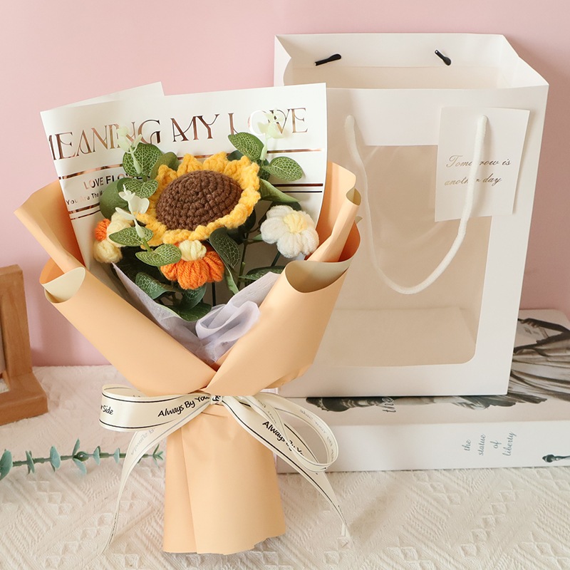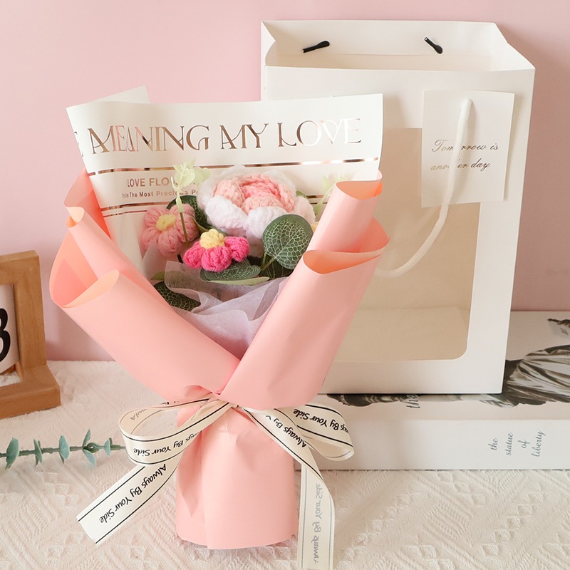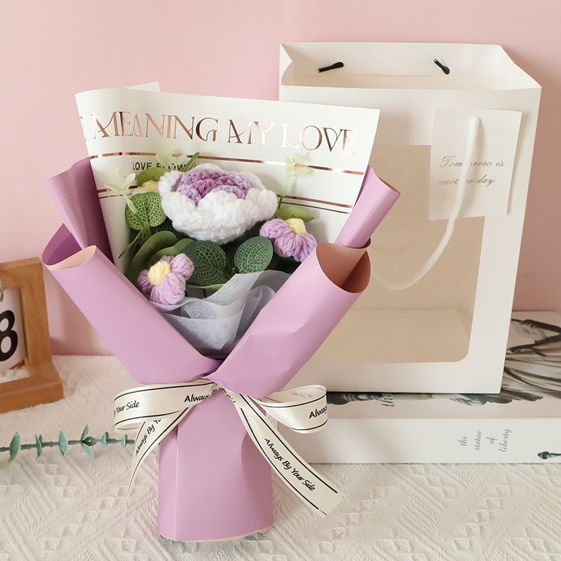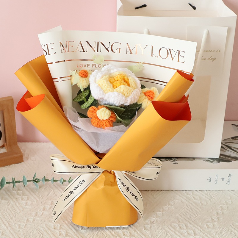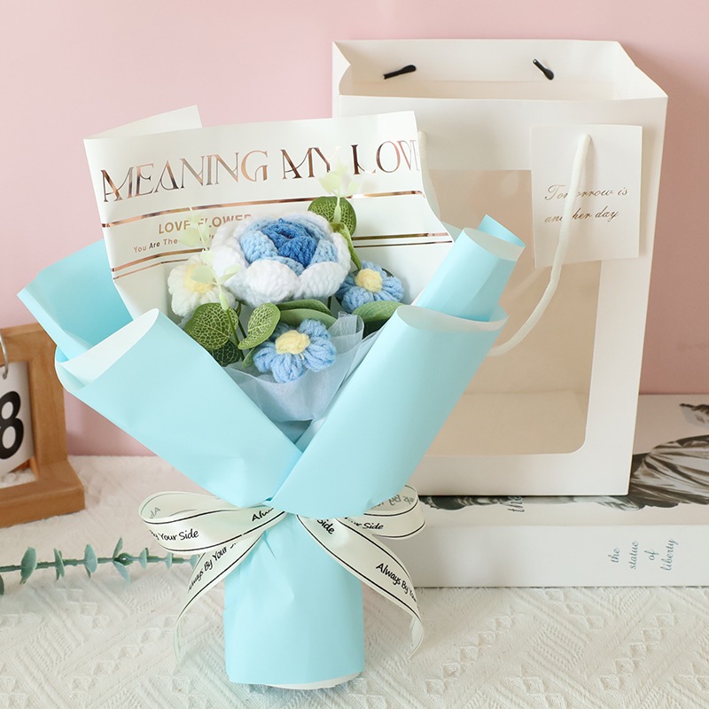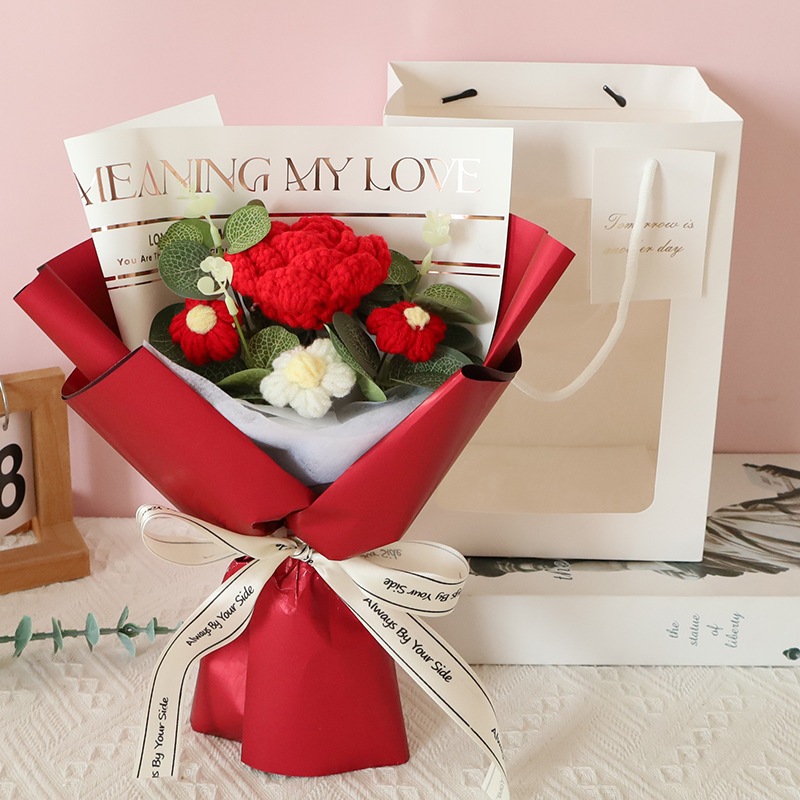 独占販売卒業シーズン贈り物 ウールかぎ針編みブーケ手編みバラ完成品クリエイティブ卒業花編み永遠の花誕生日プレゼント2つの方がお得です
