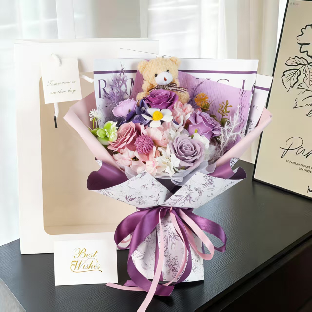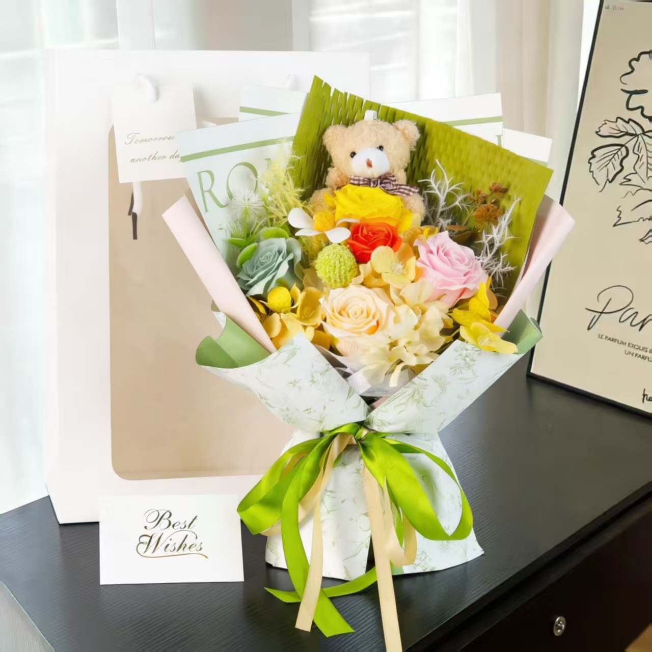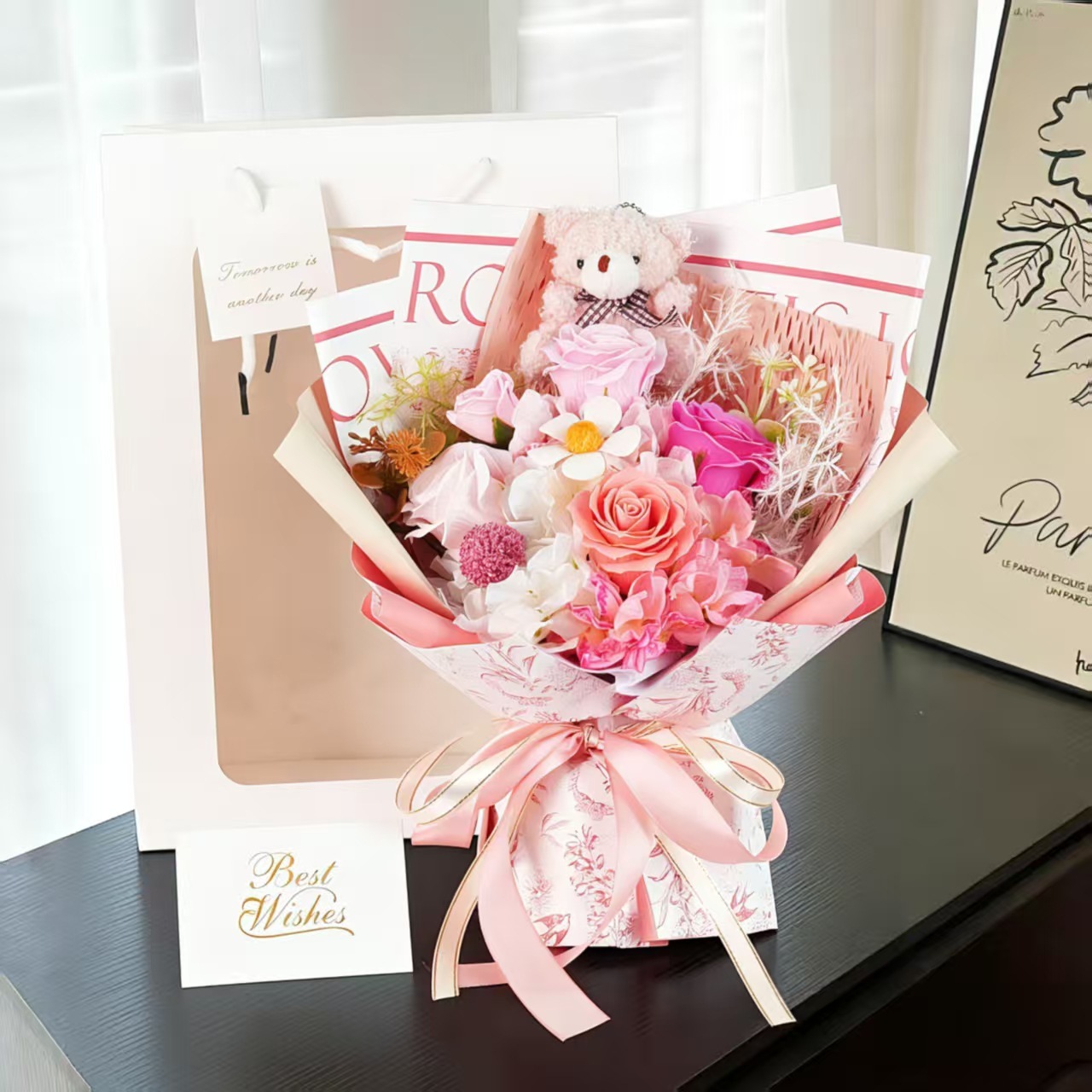 独占販売卒業シーズン贈り物 バレンタインデーの贈り物女の子のための高級永遠のバラの花束造花マンタベアブーケ2つの方がお得です