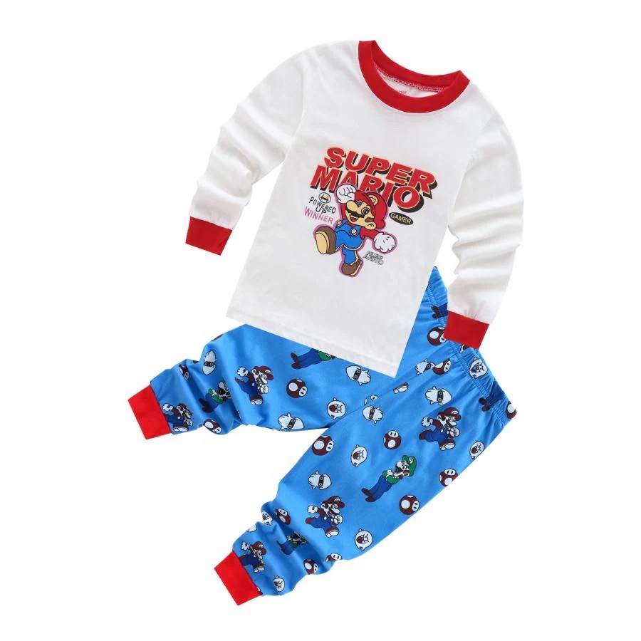 人気新品 パジャマ ルームウェア マリオ 長袖 長ズポン 上下セット 2点セット キッズ ジュニア 男子 ボーイズ 子供服 90cm-130cm 綿 可愛い 春 秋 冬