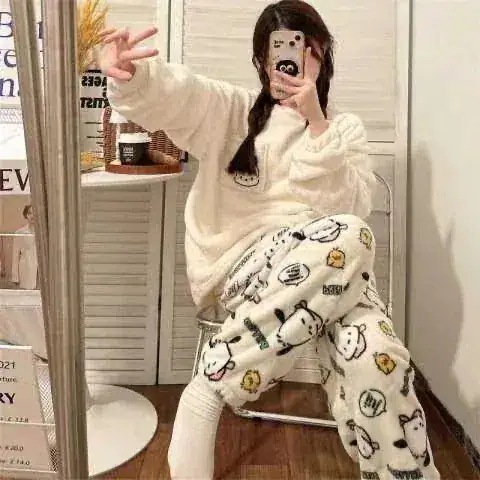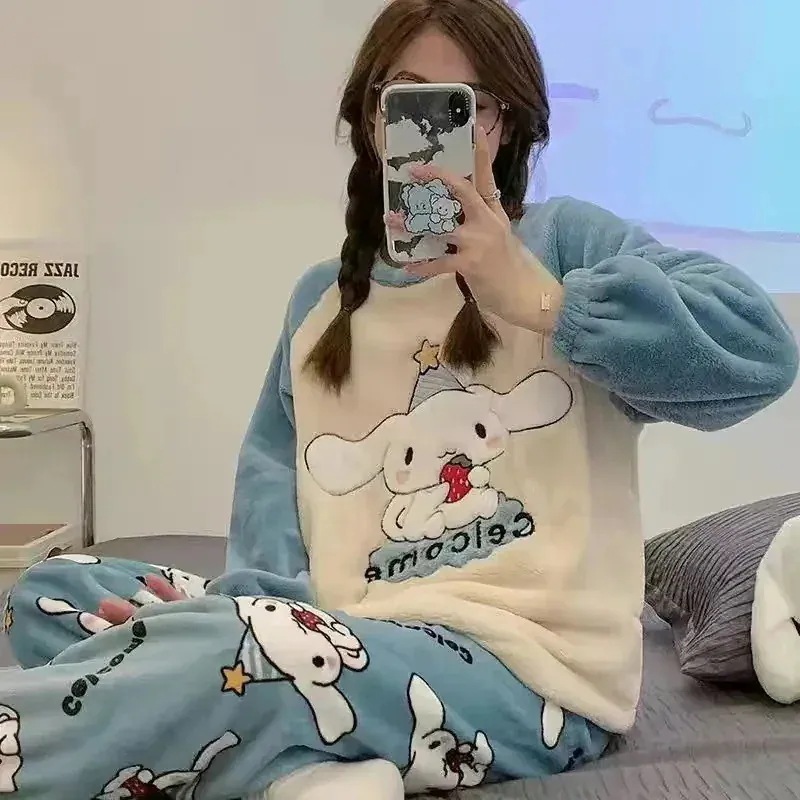 サンリオサンリオ新入荷 サンリオ 可愛い シナモンロール ハローキティ ふわふわ ミッフィー ルームウェア 秋冬 フランネル もこもこ スヌーピー パジャマ 部屋着 暖か レディース 上下2点セ