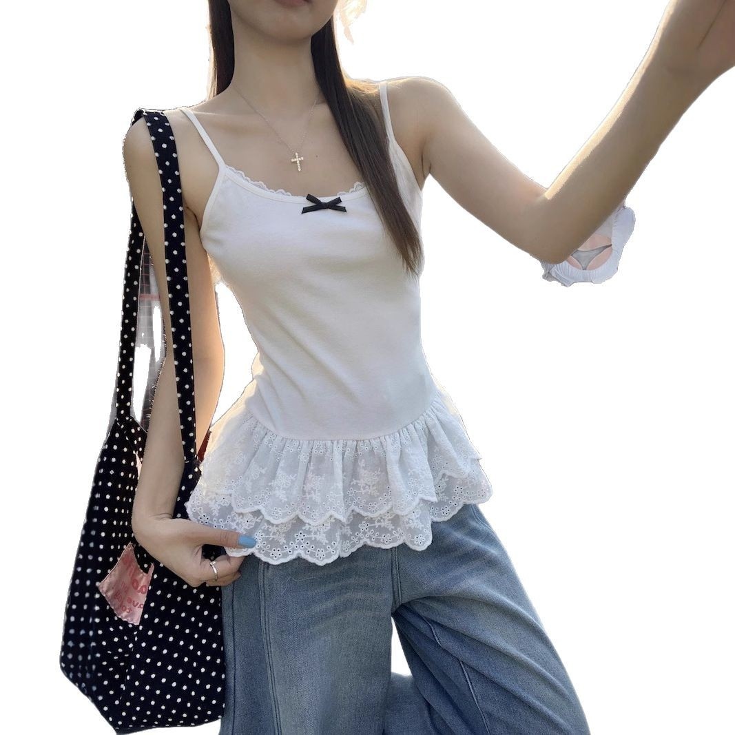 タンクトップ 新作 ギャル リボン ベスト ガーターベルト レースレース