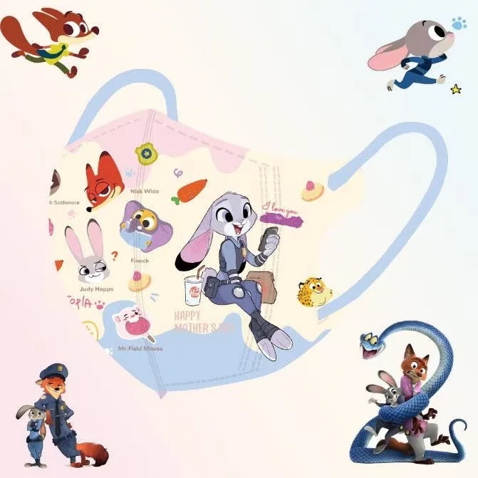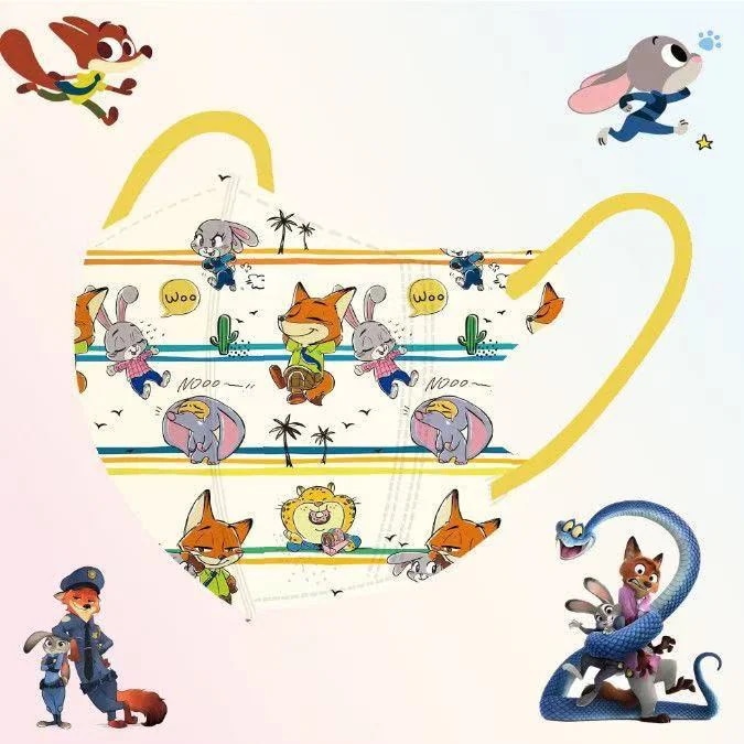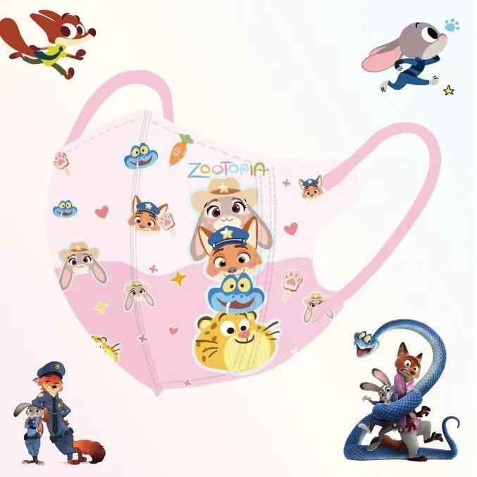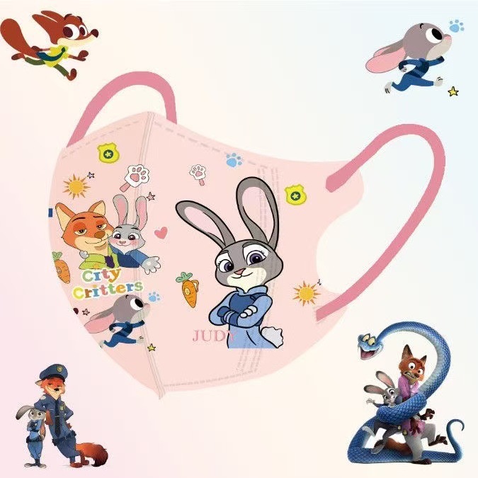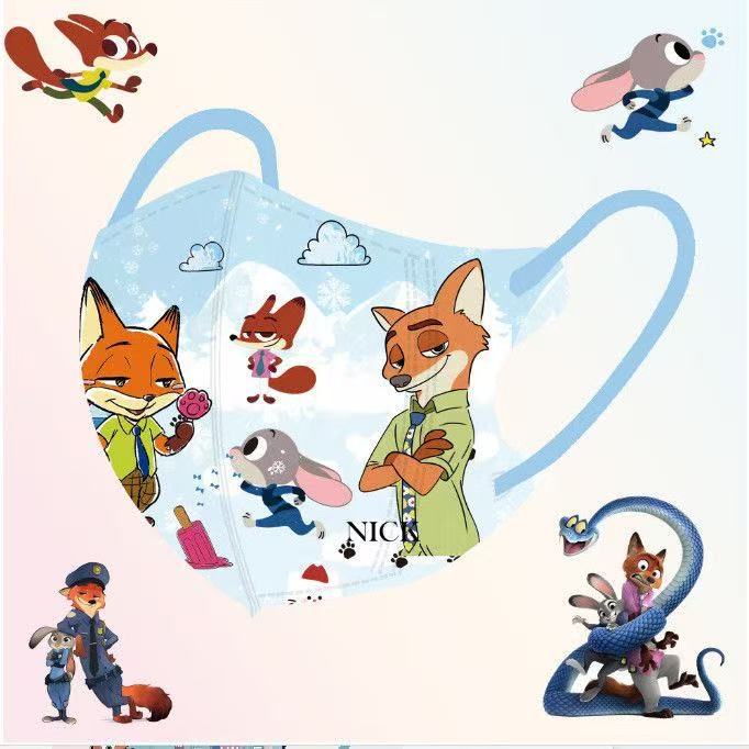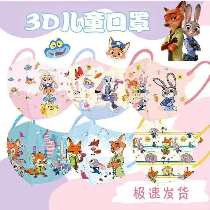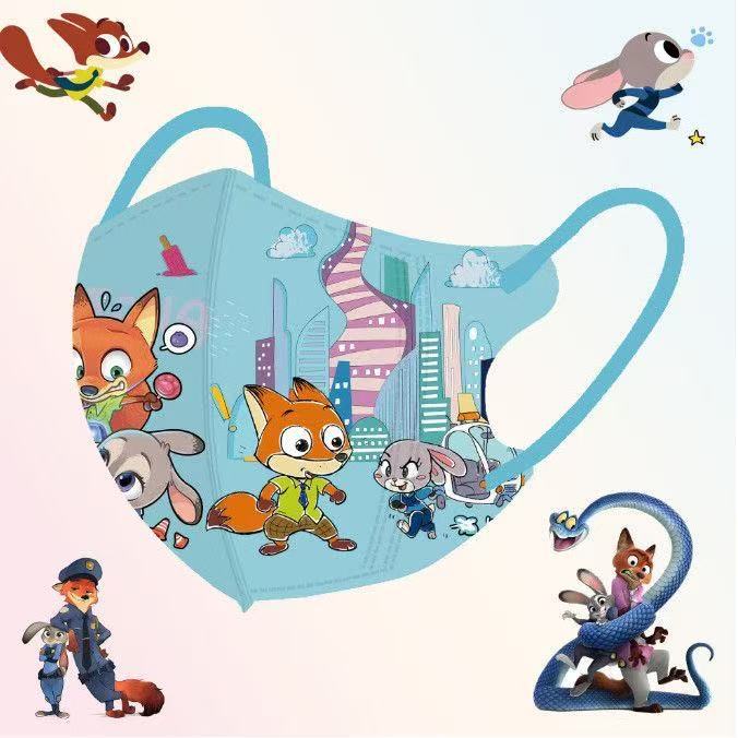 【100枚】クレイジー・アニマル・シティの子供向けキャラクター使い捨てマスク独立包装3 d立体3層子供用マスク-3