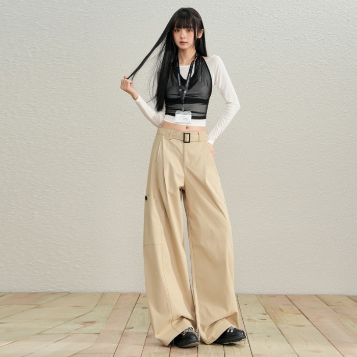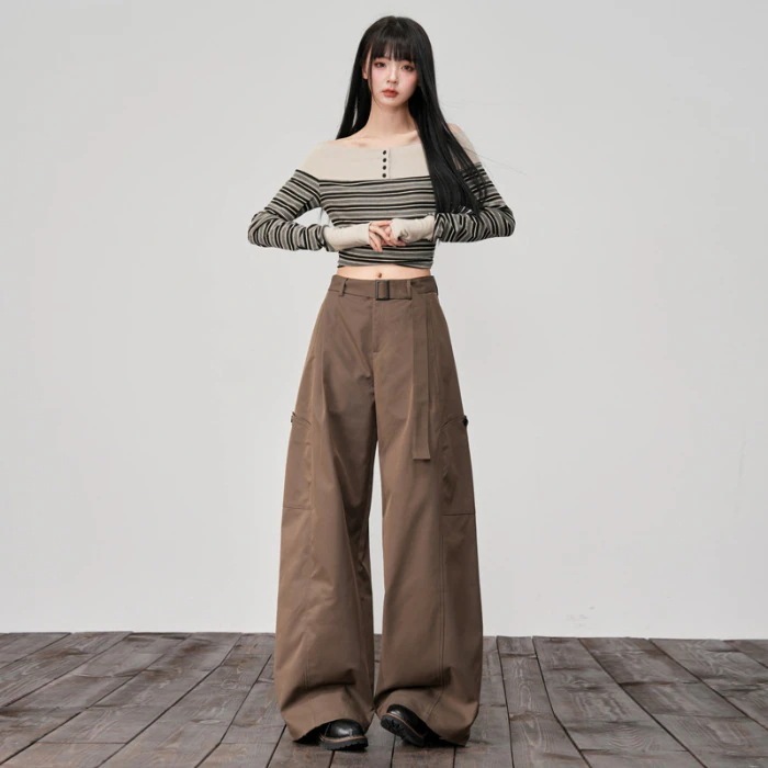 【3日出荷】ワークパンツ 着痩せストレートワイドパンツ 秋季 ズボン 春服 レディース