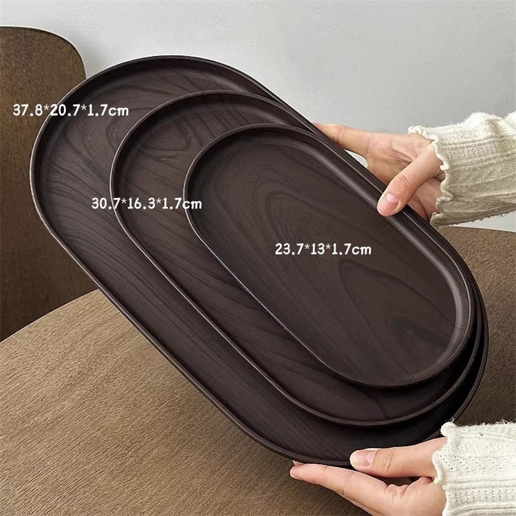INSスタイル 木目調プラスチックトレイ3点セット クルミ材色楕円形 カフェスイーツ台・家庭用茶水皿 スナック・ケーキ収納陳列 インテリア・店舗に合う