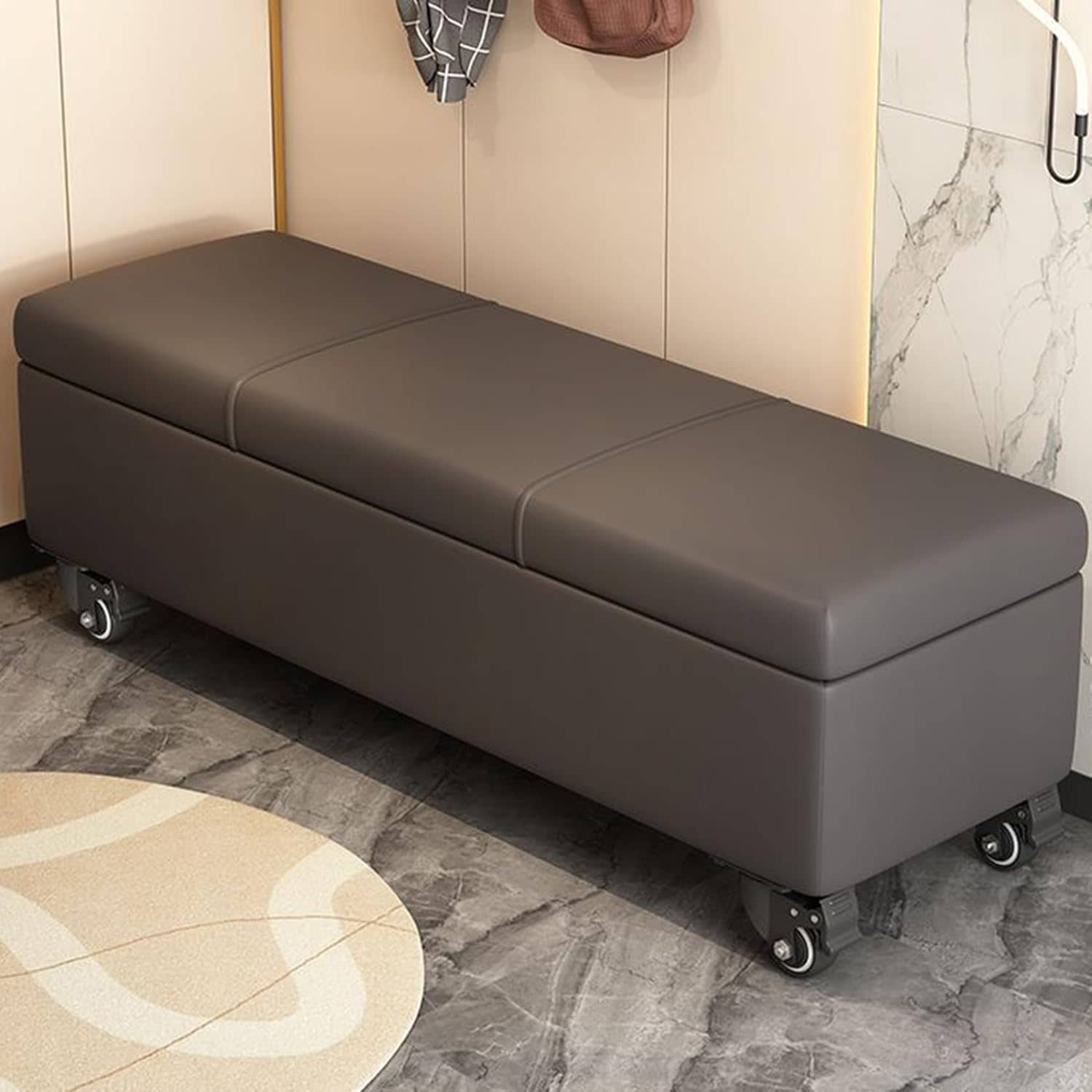 [OceanMap] 収納スツール 収納ベンチ タイプ6 収納ボックス オットマン キャスター付き ストッパーあり 玄関椅子 足置き ソファベンチ ストレージチェア ベッドエンドベンチ 座れる 布張り