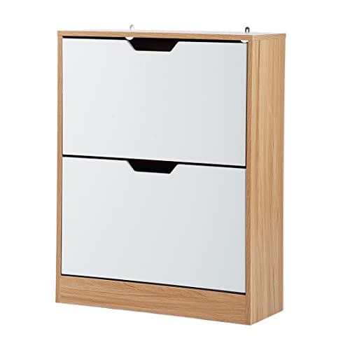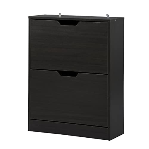 OSJ シューズラック スリム 薄型 省スペース 2段 下駄箱 大容量 奥行17cm 幅60cm 高さ108cm ブラウン