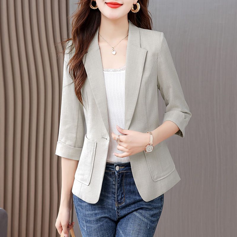 夏服 スーツアウター スーツ ブレザー 薄手 カジュアル 七分袖 無地 スーツ半袖 ファッション レディース
