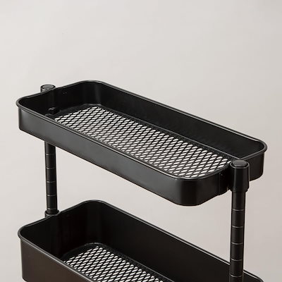 全国送料無料 ニトリ(NITORI) スチールワゴントロリ3スリム用 バスケットハーフ ブラック 2111200008418