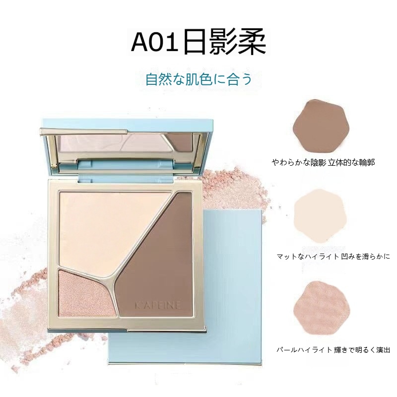 K'APEINE【新品発売】ハイライト シェーディングミニセット 3in1 パレット ブラシ パフ ブロンザー ハイライト マットハイライト ハイライトパウダー ノーズシャドウ パッケージ ブロンザー