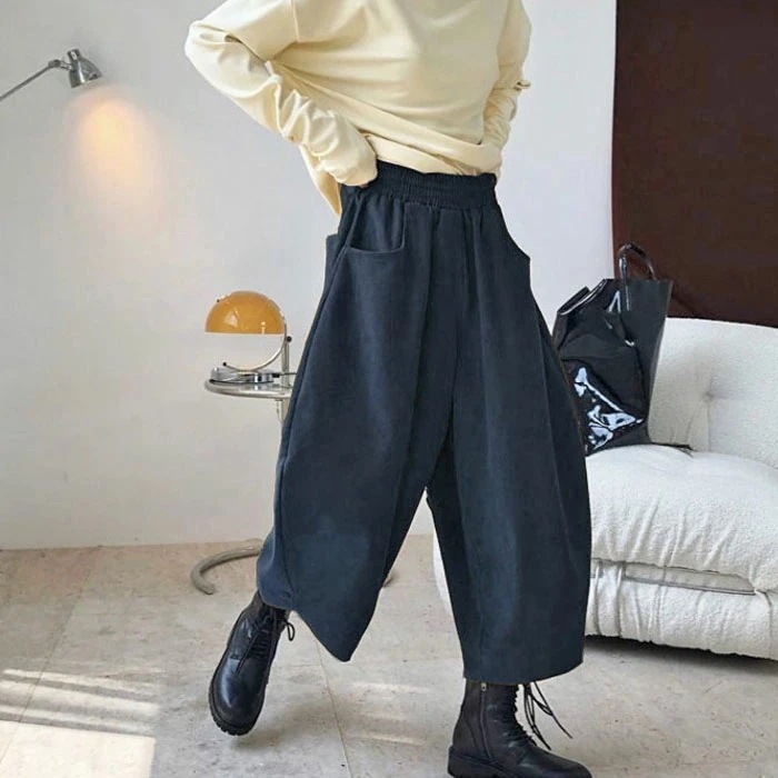 ワイドパンツ ガウチョパンツ レディース ハイウエスト 大きいサイズ 無地 きれいめ 秋冬 ウエストゴム 厚手 ゆったり