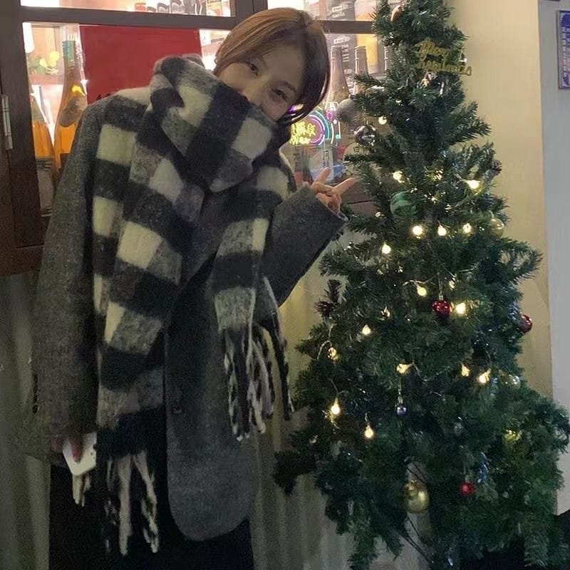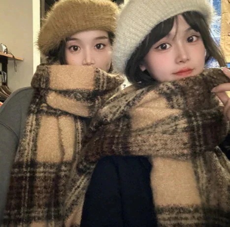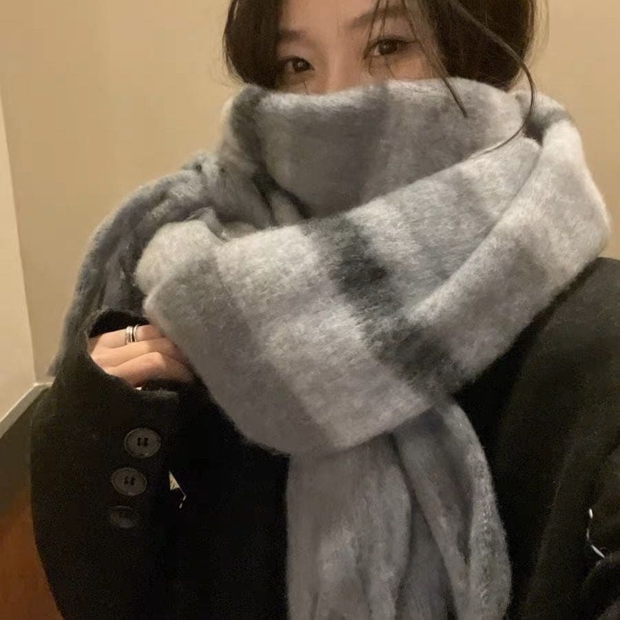 柔らか ストール ロング ショール ストール 暖か 韓国ファッションニットマフラー ニットマフラー レディース チェック柄 韓国風 秋冬 大判