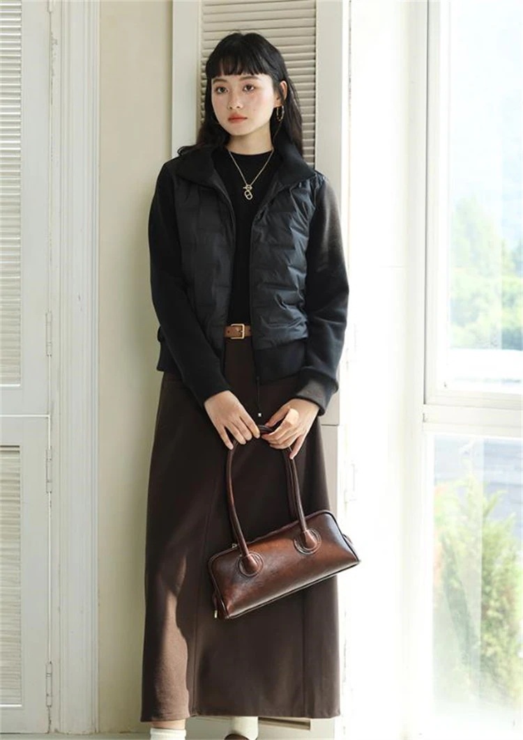 通勤スタイルのレディース無地ジッパーダウンジャケット 2026年秋冬スタンドカラー新作 アヒルダウン充填の防寒アウター 整ったフィットシルエット 3色から選べるオフィス・日常コーデ