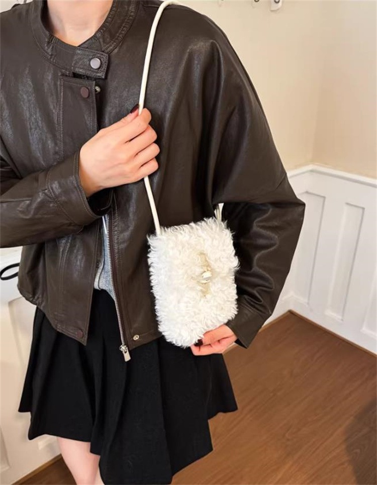 通勤するユニークなラムフリースファーバッグ 2026新作精致ミニバッグ クロスボディスマホバッグとして使え 毛足が豊かで質感があり 4カラー展開 日常の小物収納にぴったり おしゃれなアクセントになる