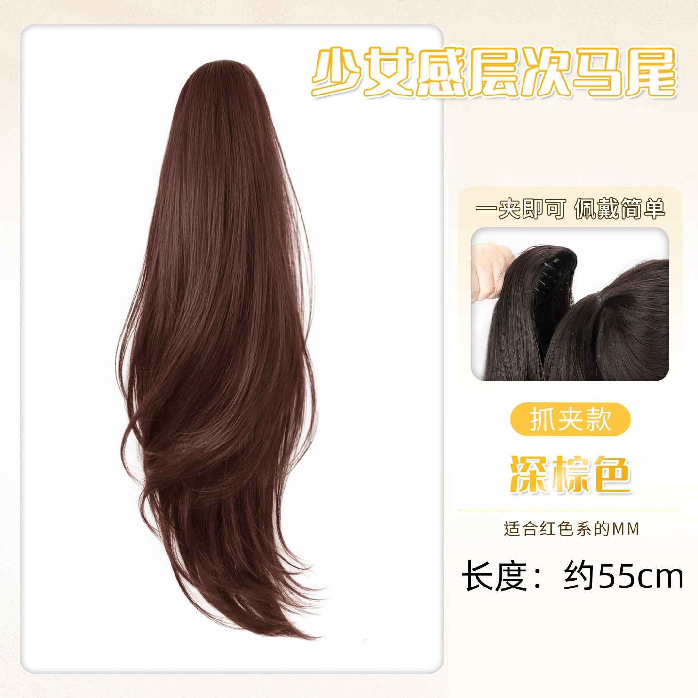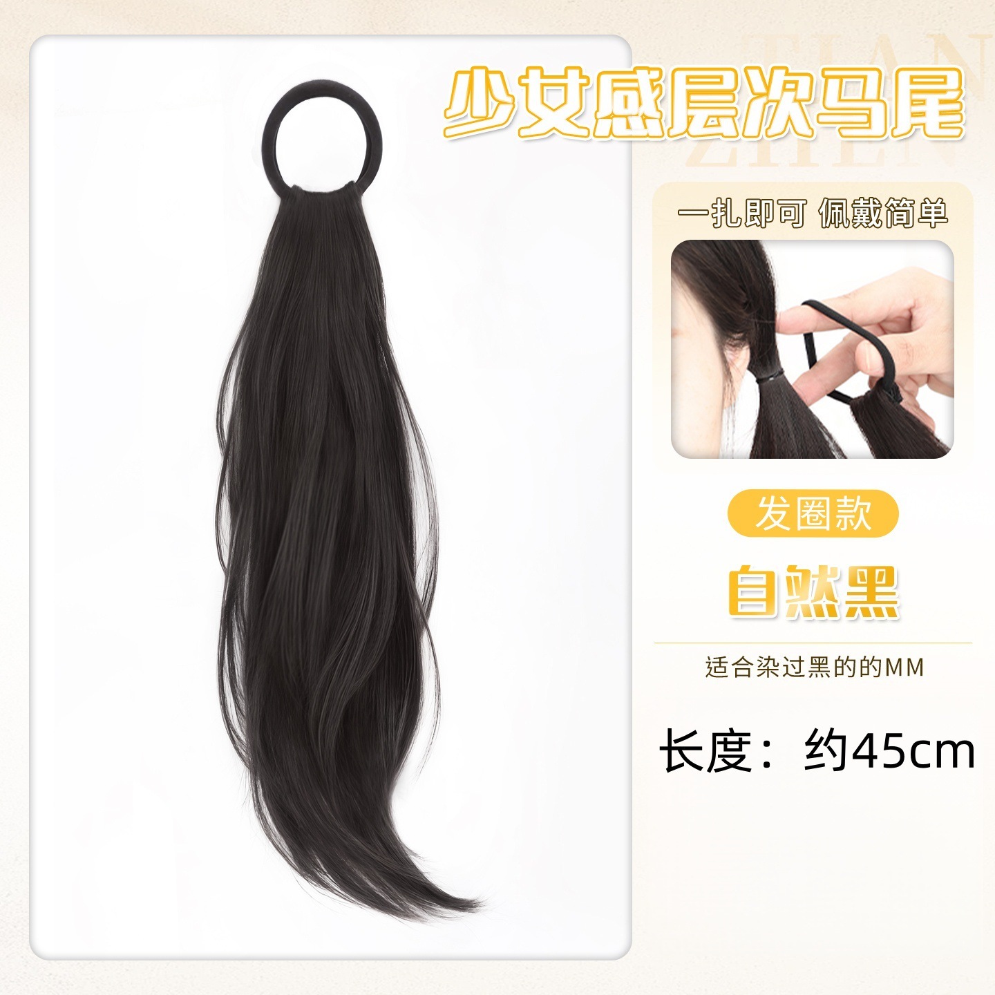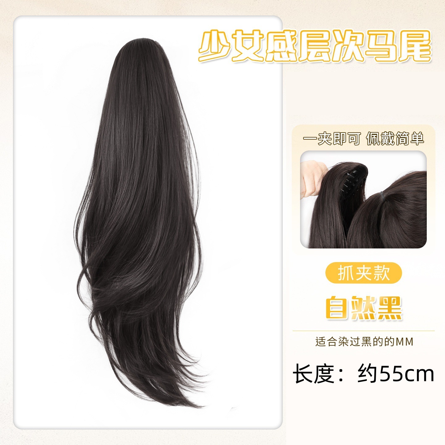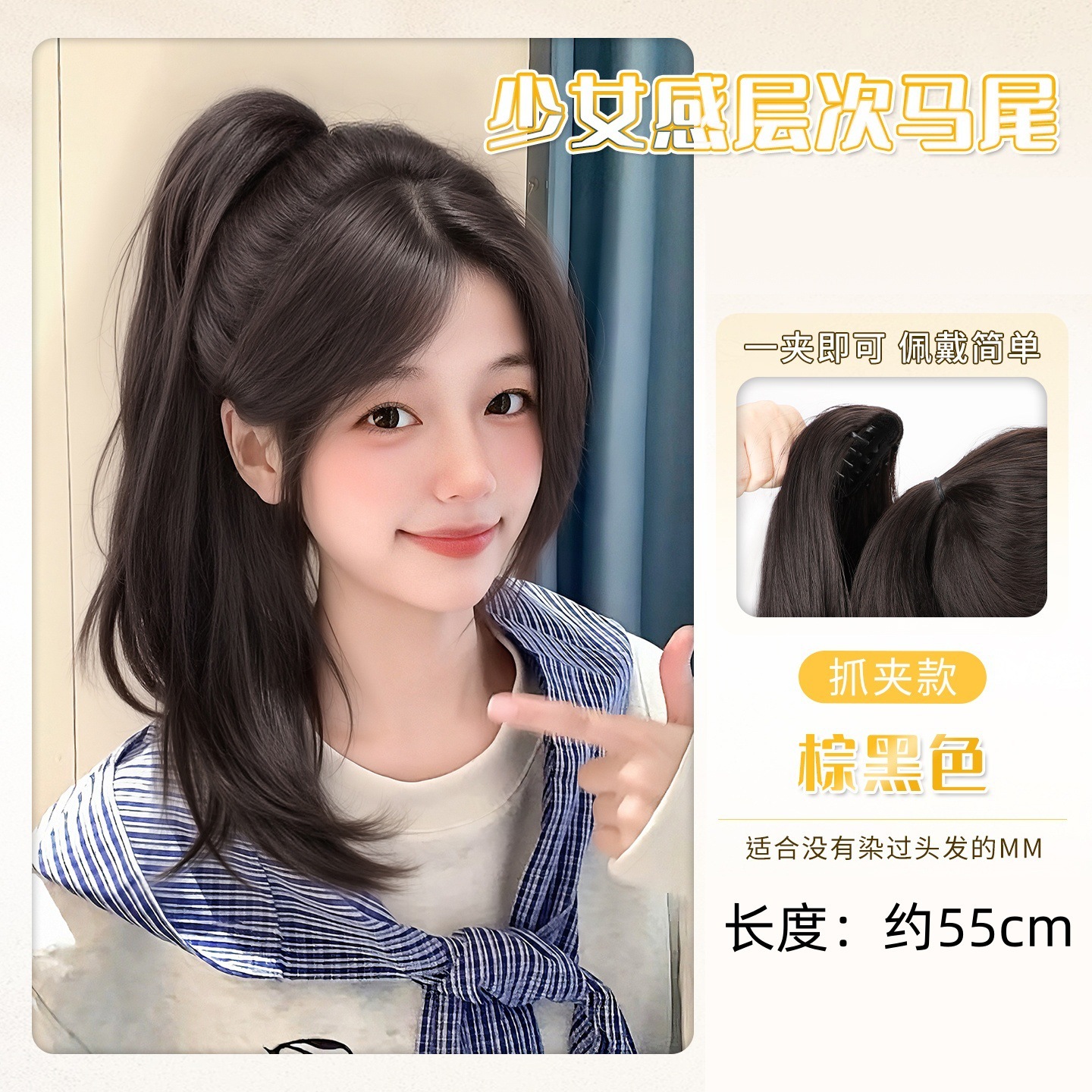 ウィッグ女性グリップ式の少女感の高いポニーテールウィッグは毛皮を少し巻いた毛筋の頭ひもを模した偽のポニーテールポニーテール
